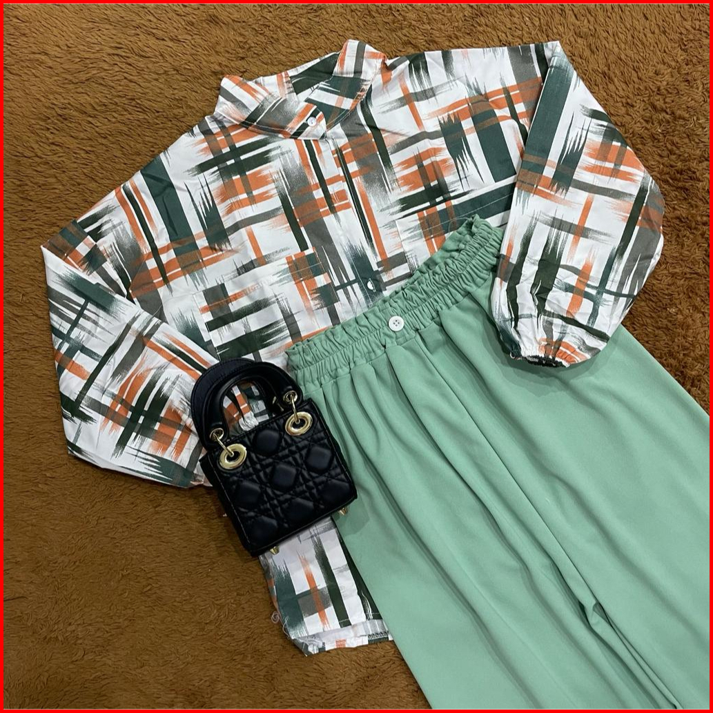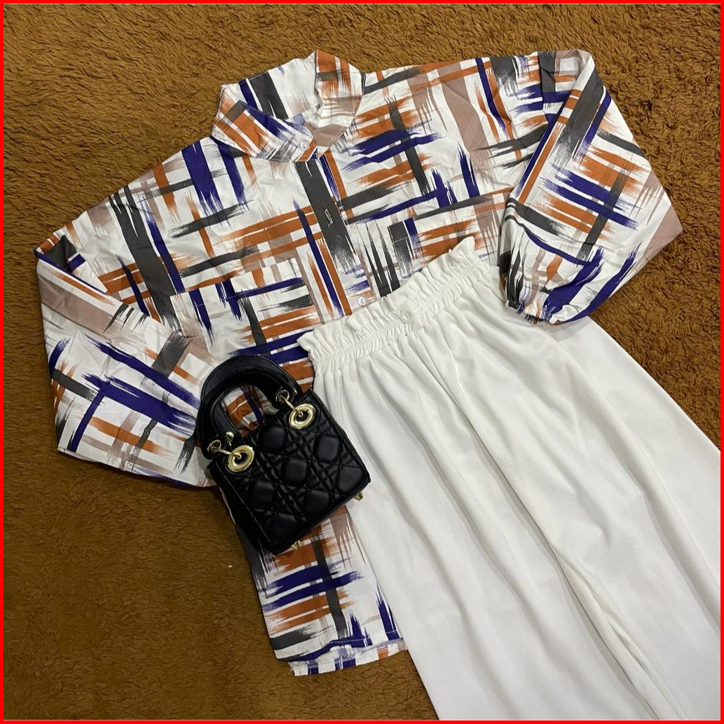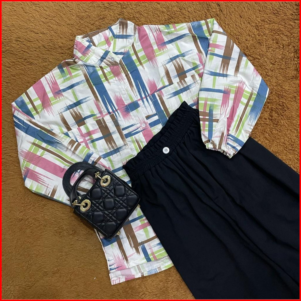 One Set Audrey Celana Dobby Pants Setelan Wanita Kekinian Atasan