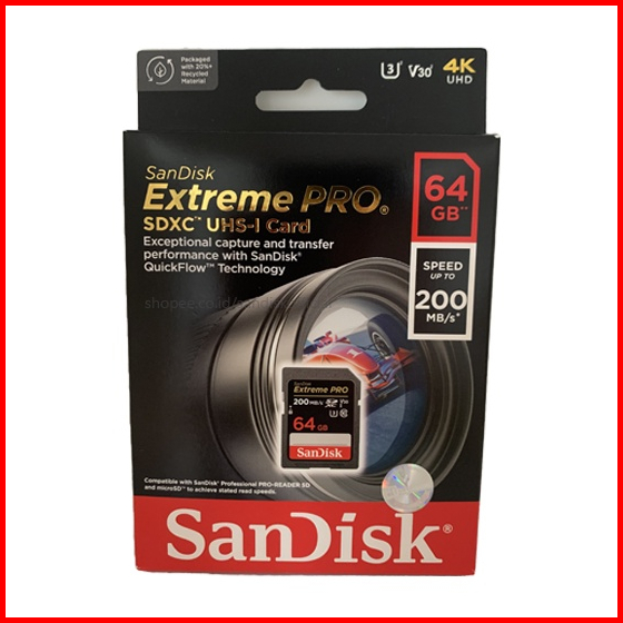 Sandisk Sdxc Card Extreme Pro 64gb Class 10 U3 V30 For 4k Uhd Up To 200mb S