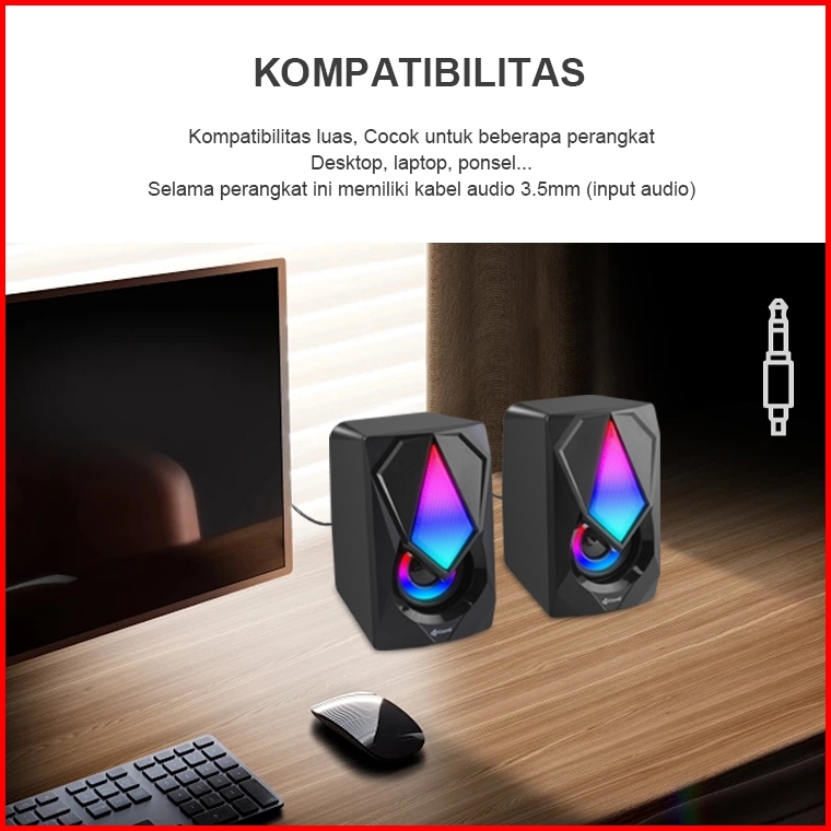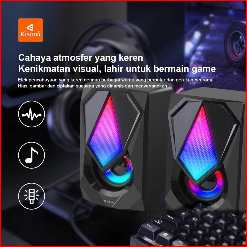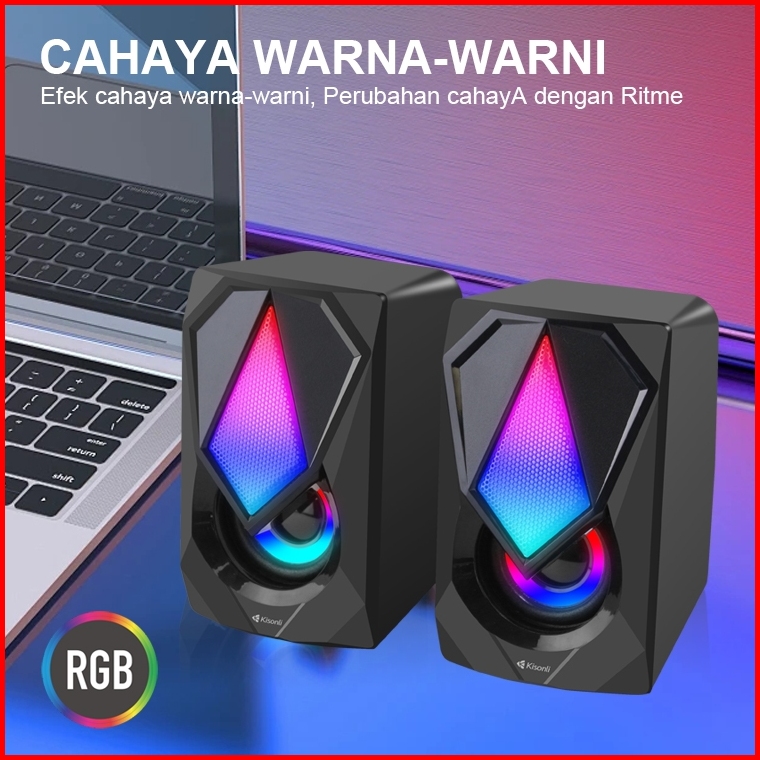 Kisonli Speaker Gaming Laptop Komputer L9090 Plus Led Rgb Light With Volume Control