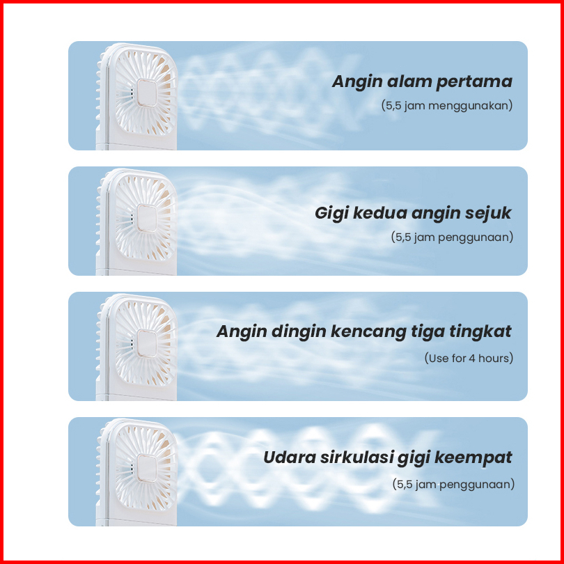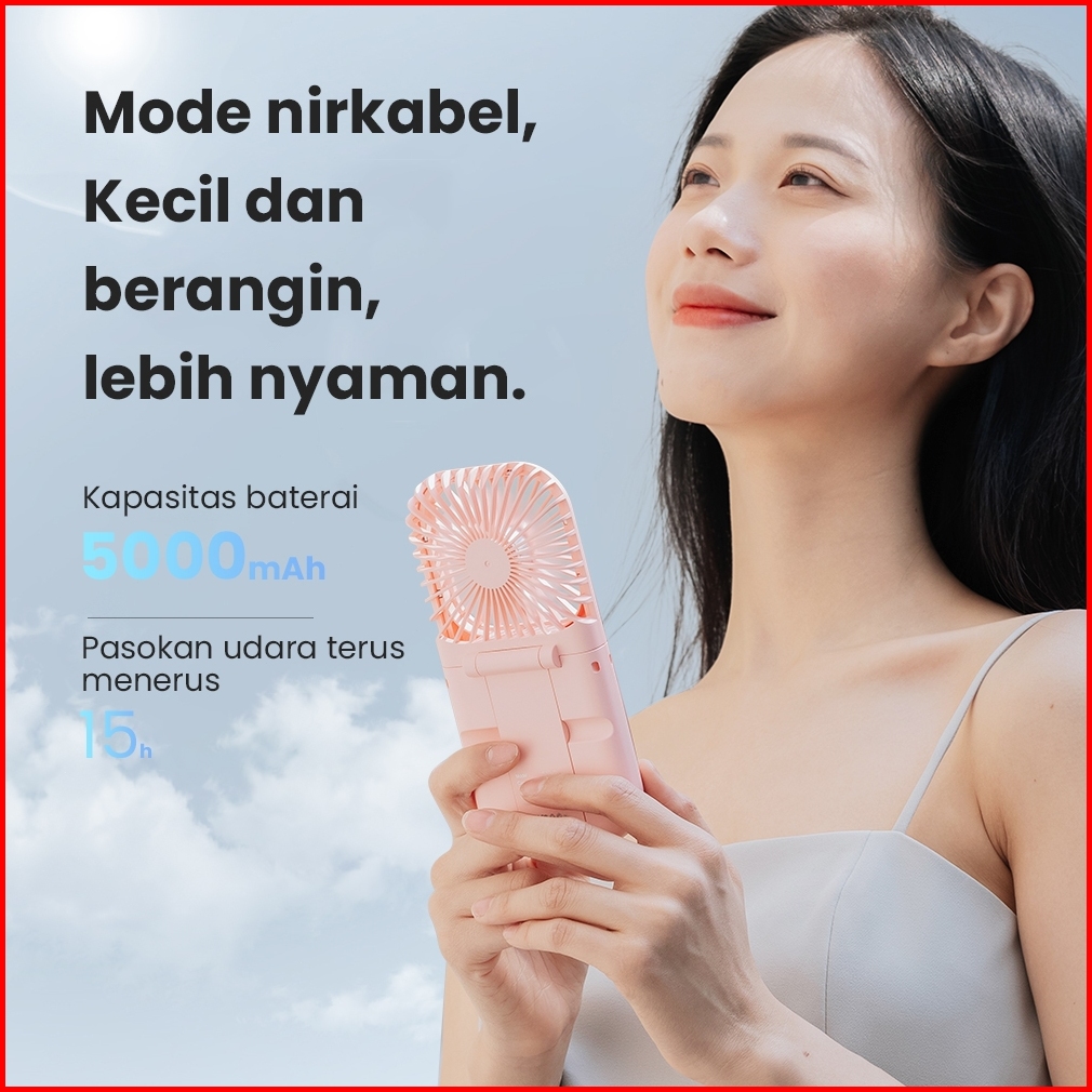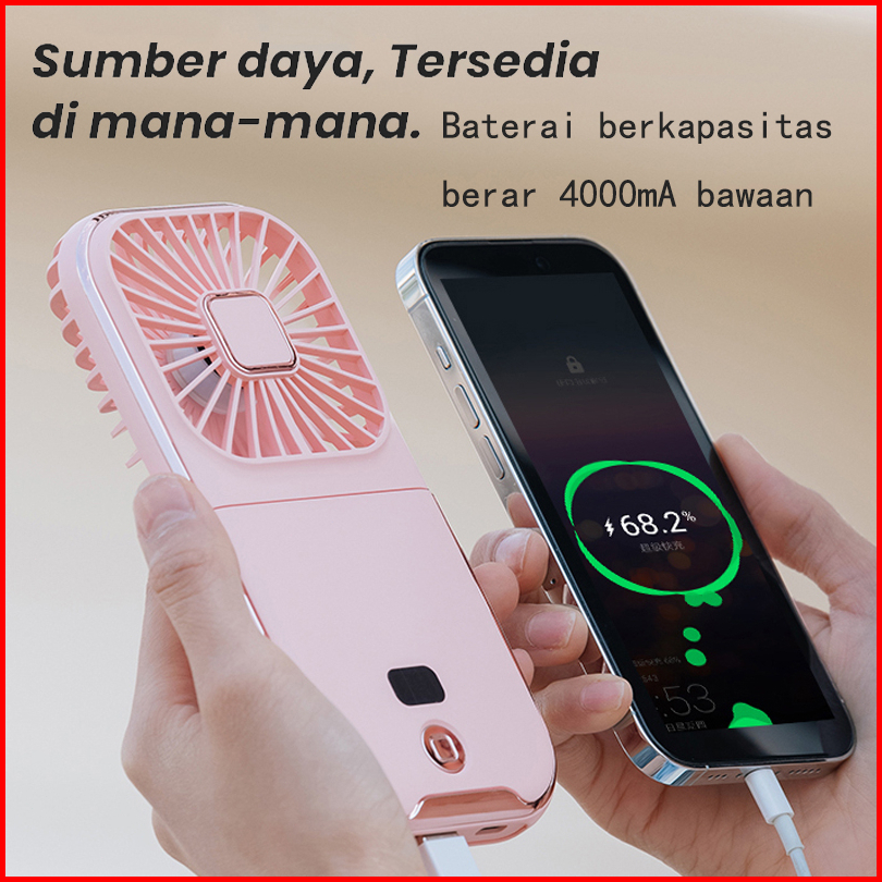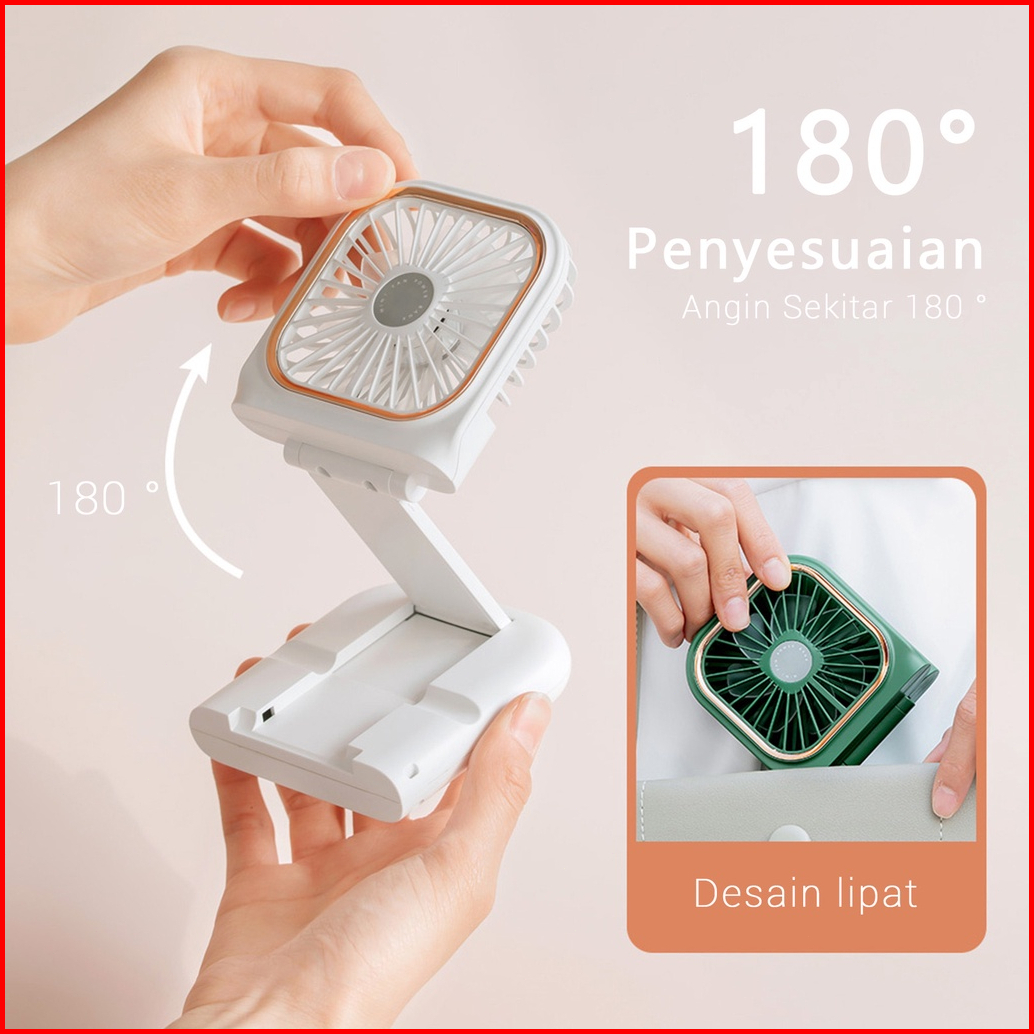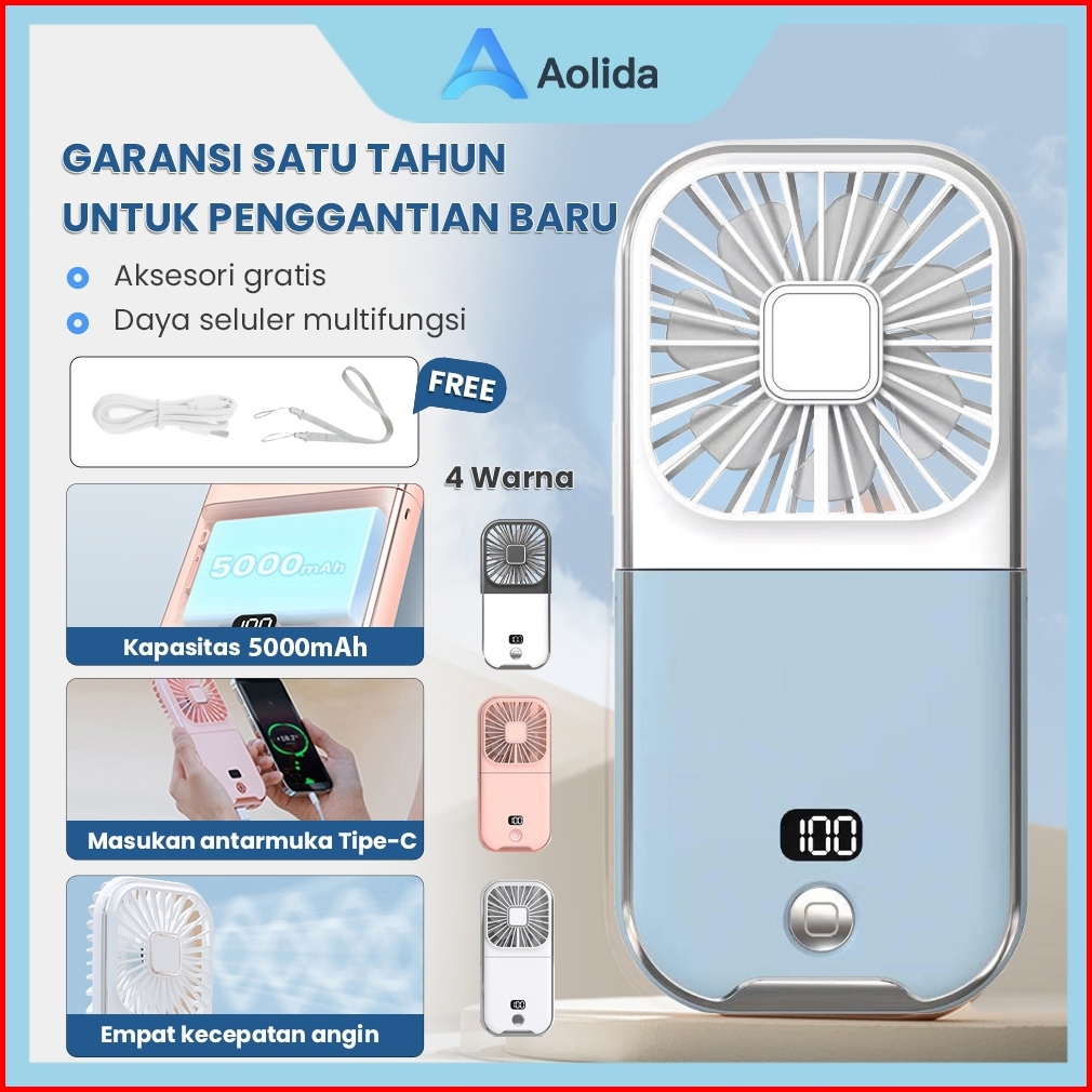 Aolida Kipas Angin Portable Mini Type-c Usb Led Menunjukkan Lipat Dudukan Ponsel Dan Powerbank 5000mah Baterai Tahan Lam