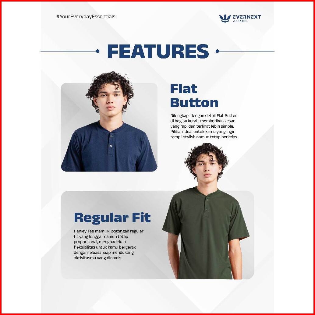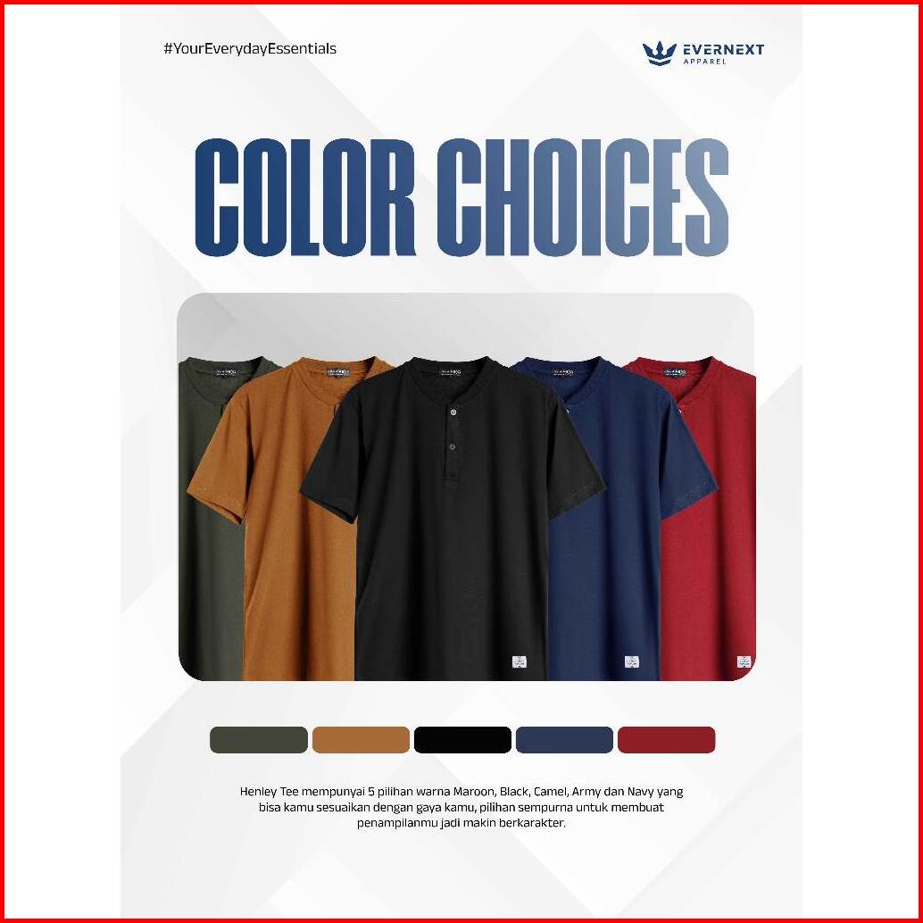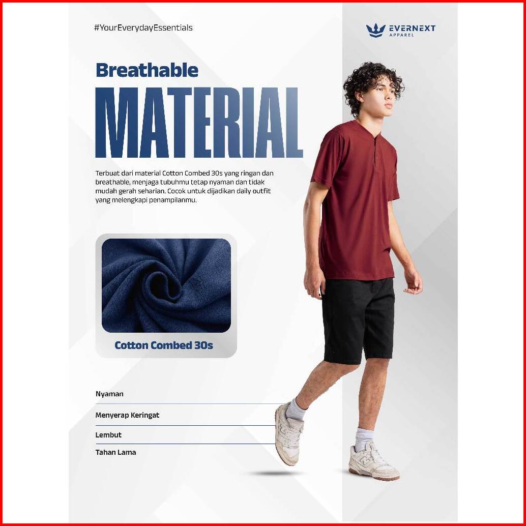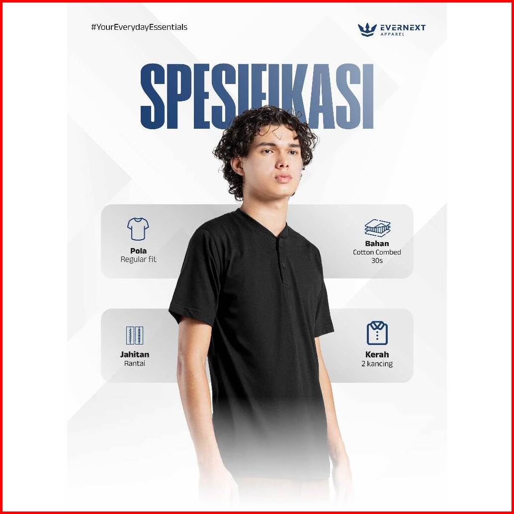 Evernext - Kaos Polos Pria Henley Tee Kaos Kancing Lengan Pendek Basic T-shirt Combed 30s Pria