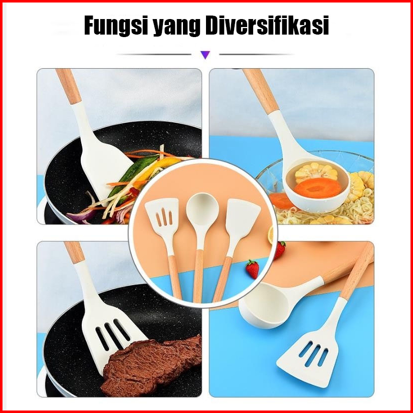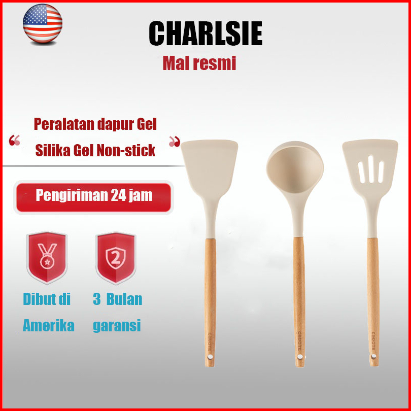 Charlsie Dapat 3pcs Sutil Spatula Sendok Sup Anti Panas Bahan Silikon Kuat Alat Masak Tumis Goreng