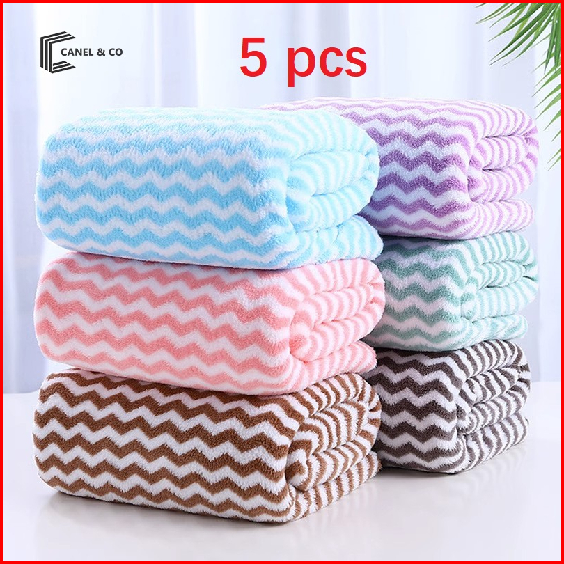 Canel Co 5 Pcs Bath Towel Ripple Wave Pattern Coral Fleece 140cm X 70cm Bahan Microfiber Handuk Mandi Dewasa Lembut