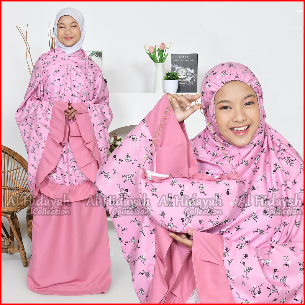Mukena Anak Resleting Dagu 2 In 1 Katun Premium Motif Bunga Umur 2 3 4 5 6 7 8 9 10 11 12 13 14 15 Tahun Mukenah Tanggun
