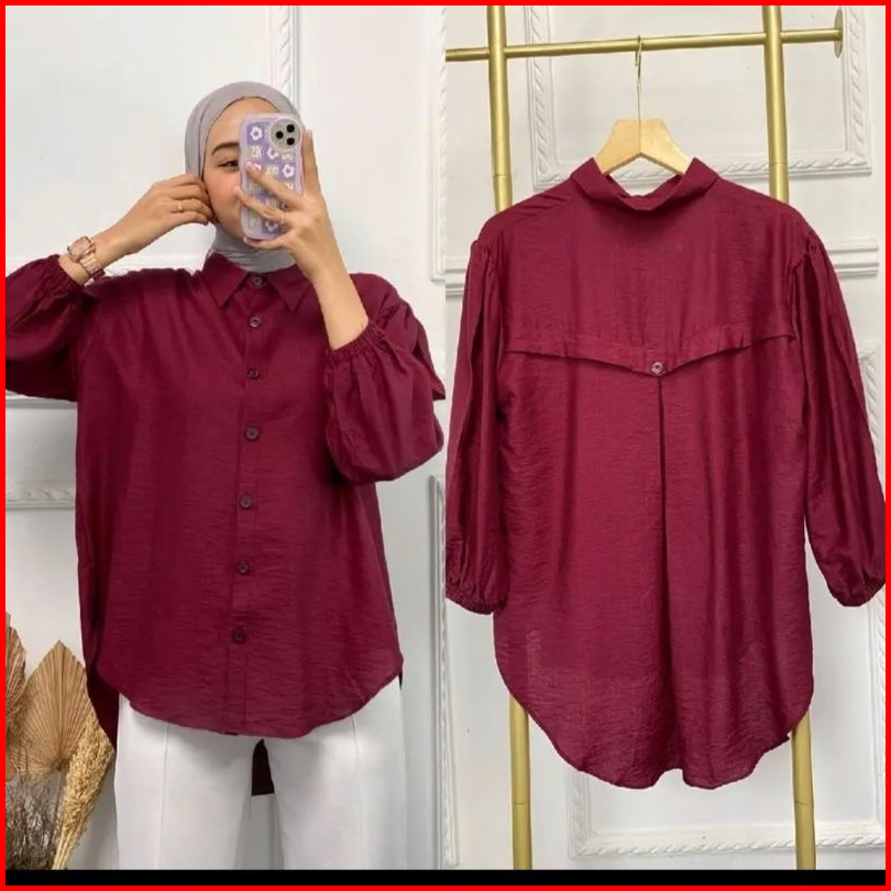 Laura Blouse Polo Linen Premium Atasan Wanita Full Kancing