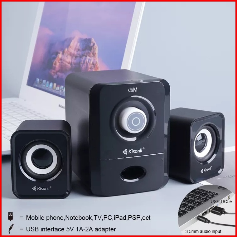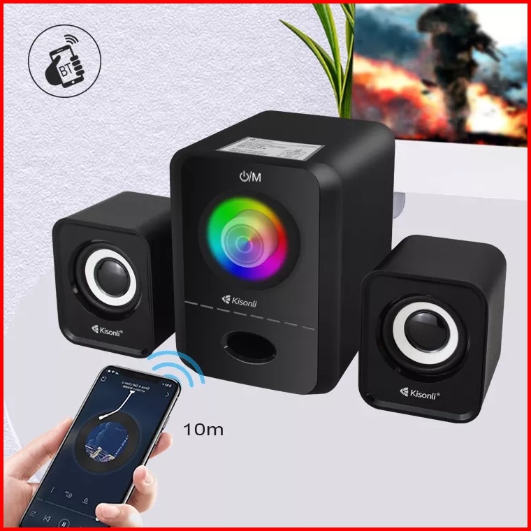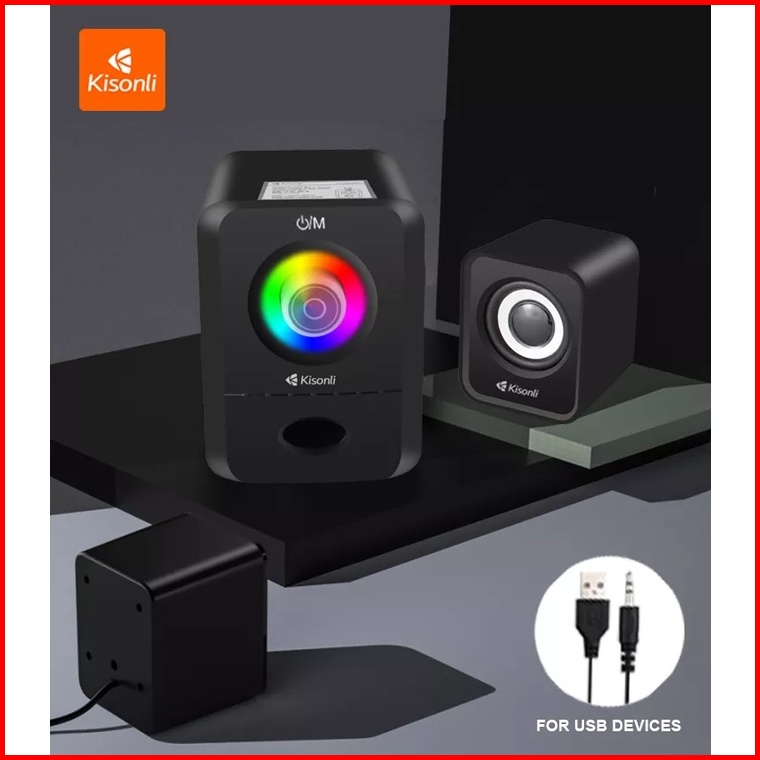 Kisonli Speaker Gaming Laptop Komputer Bluetooth U-2900bt Subwoofer Led Light Rotatable Button