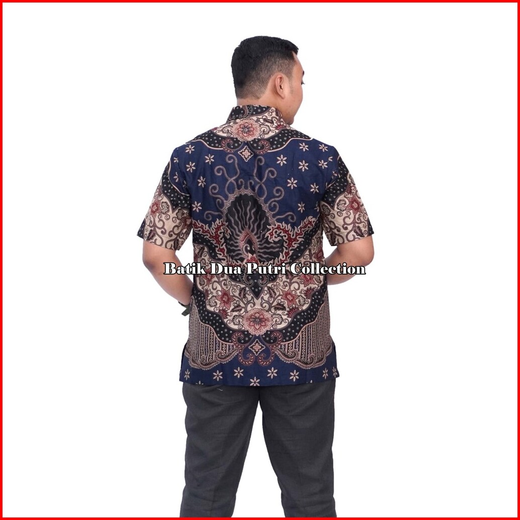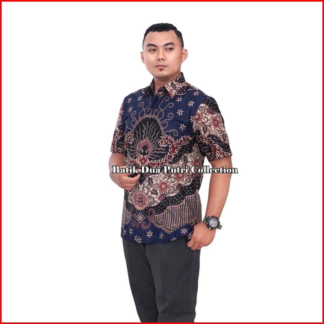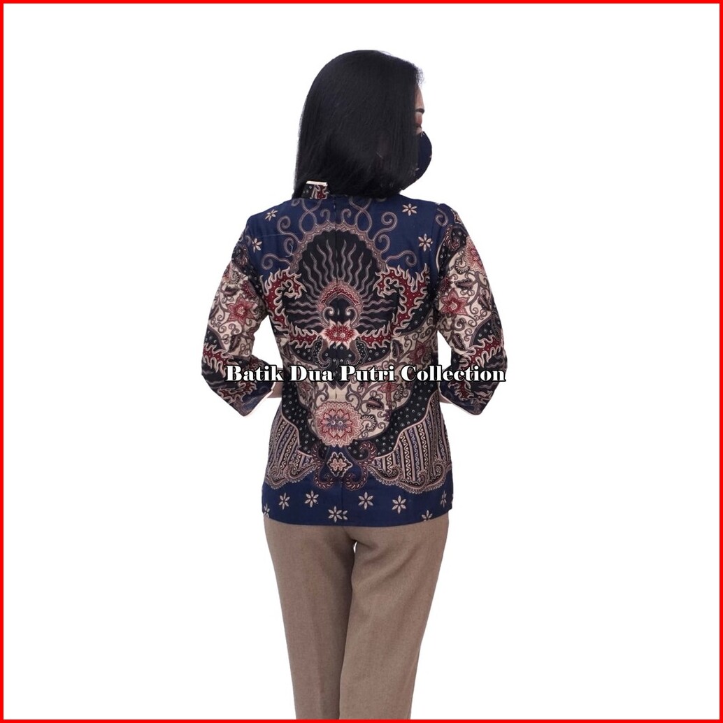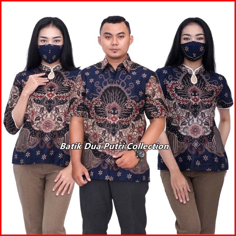 Couple Batik Blouse Wanita Atasan Kemeja Batik Pria Doblong Navi By Batik Dua Putri Collection