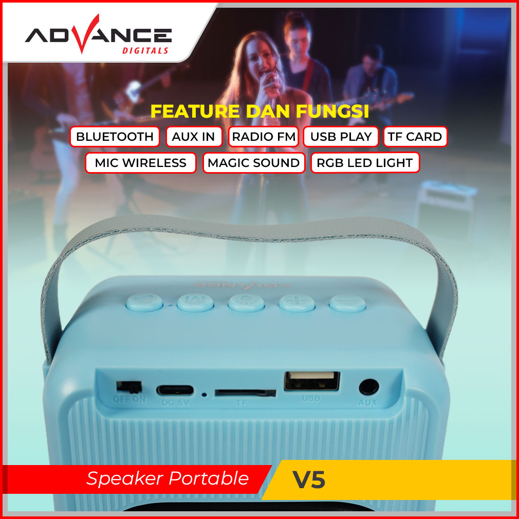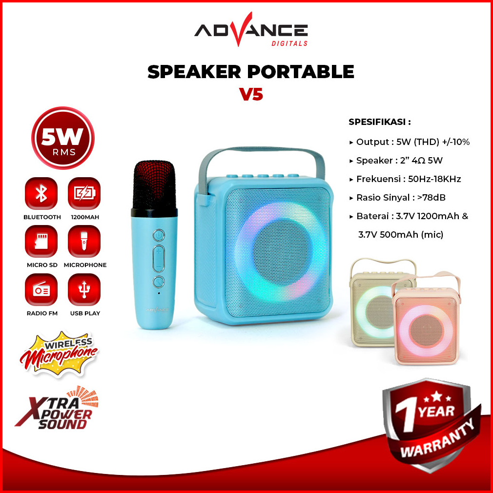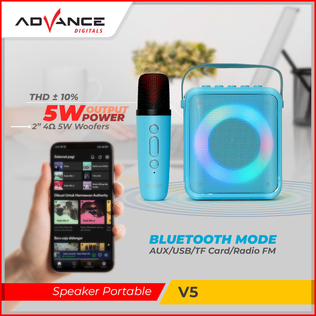 Advance V5 Speaker Bluetooth Mini 2 Inch Aktif Portable Karaoke Extra Bass Gratis 1 Microphone Garansi 1 Tahun