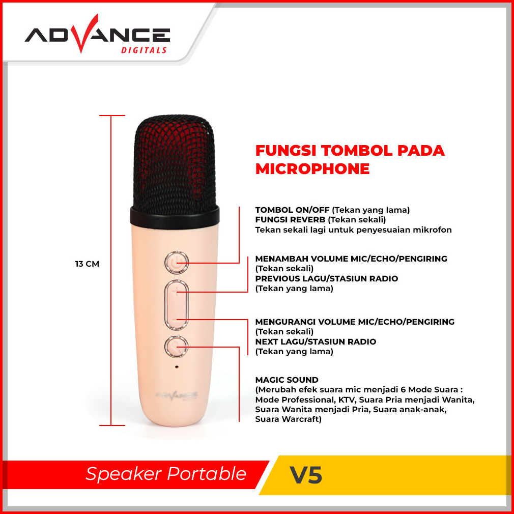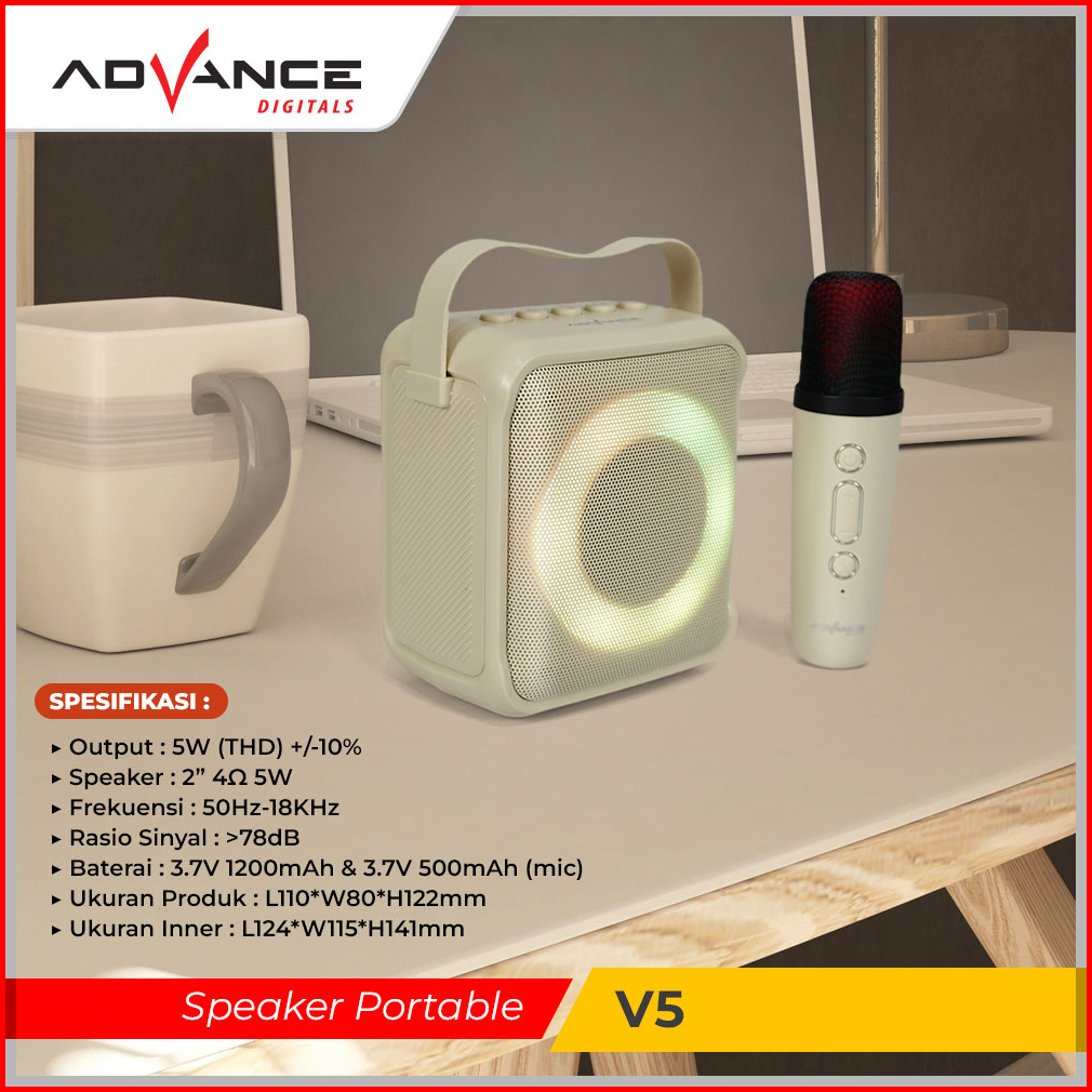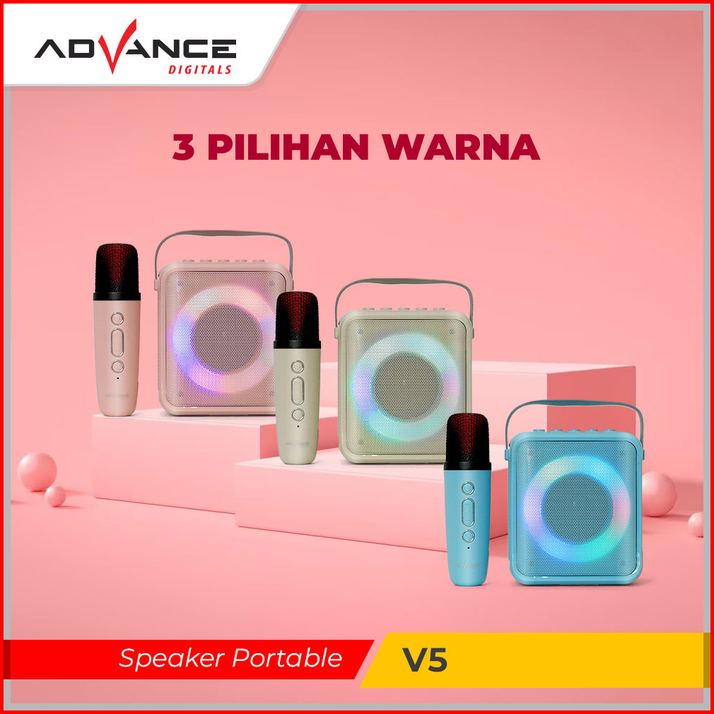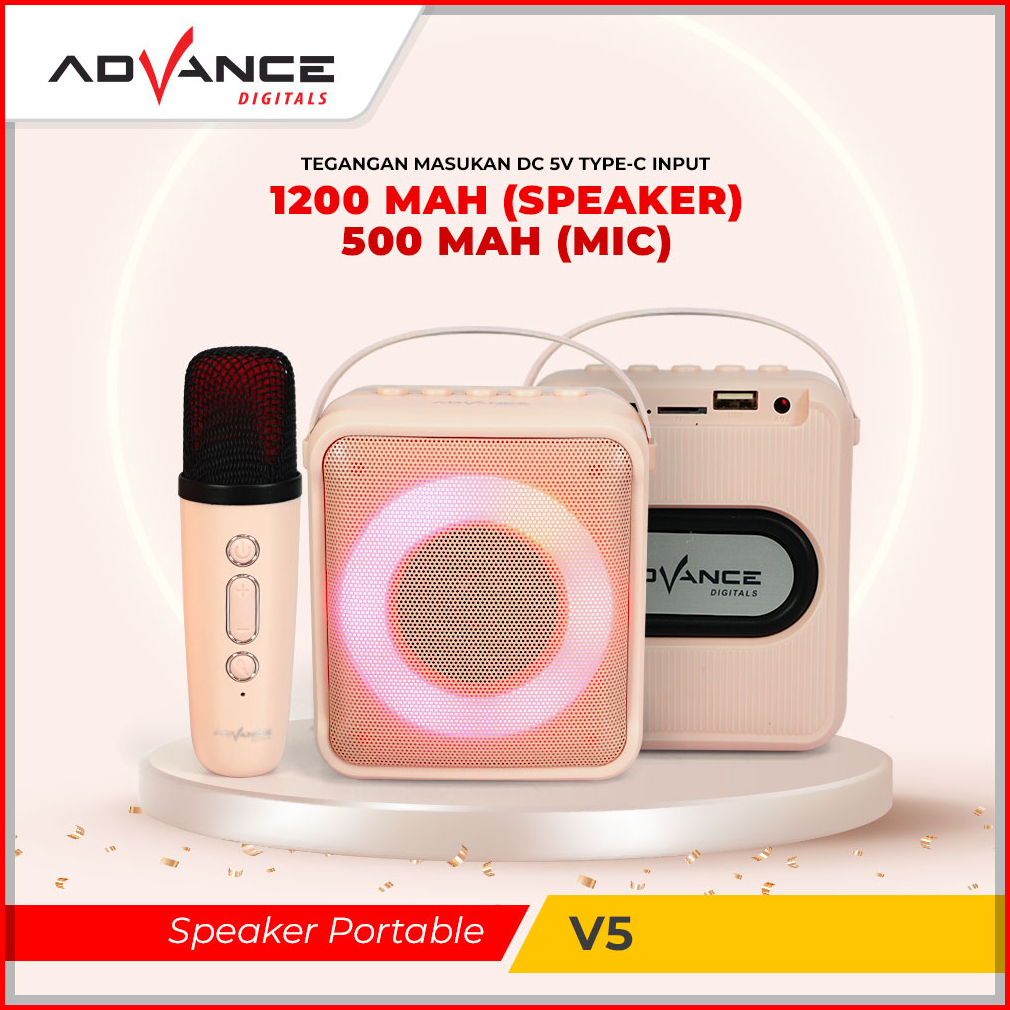 Advance V5 Speaker Bluetooth Mini 2 Inch Aktif Portable Karaoke Extra Bass Gratis 1 Microphone Garansi 1 Tahun