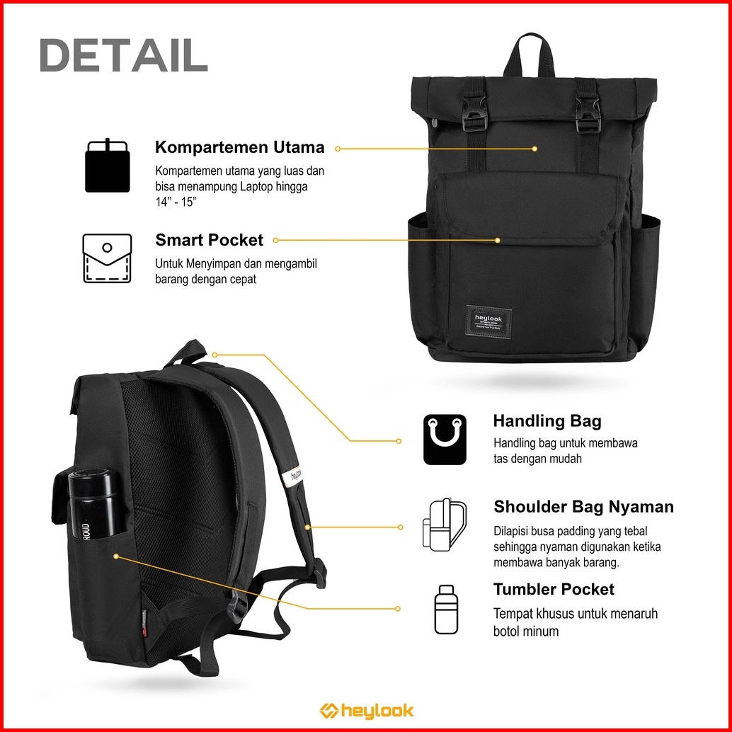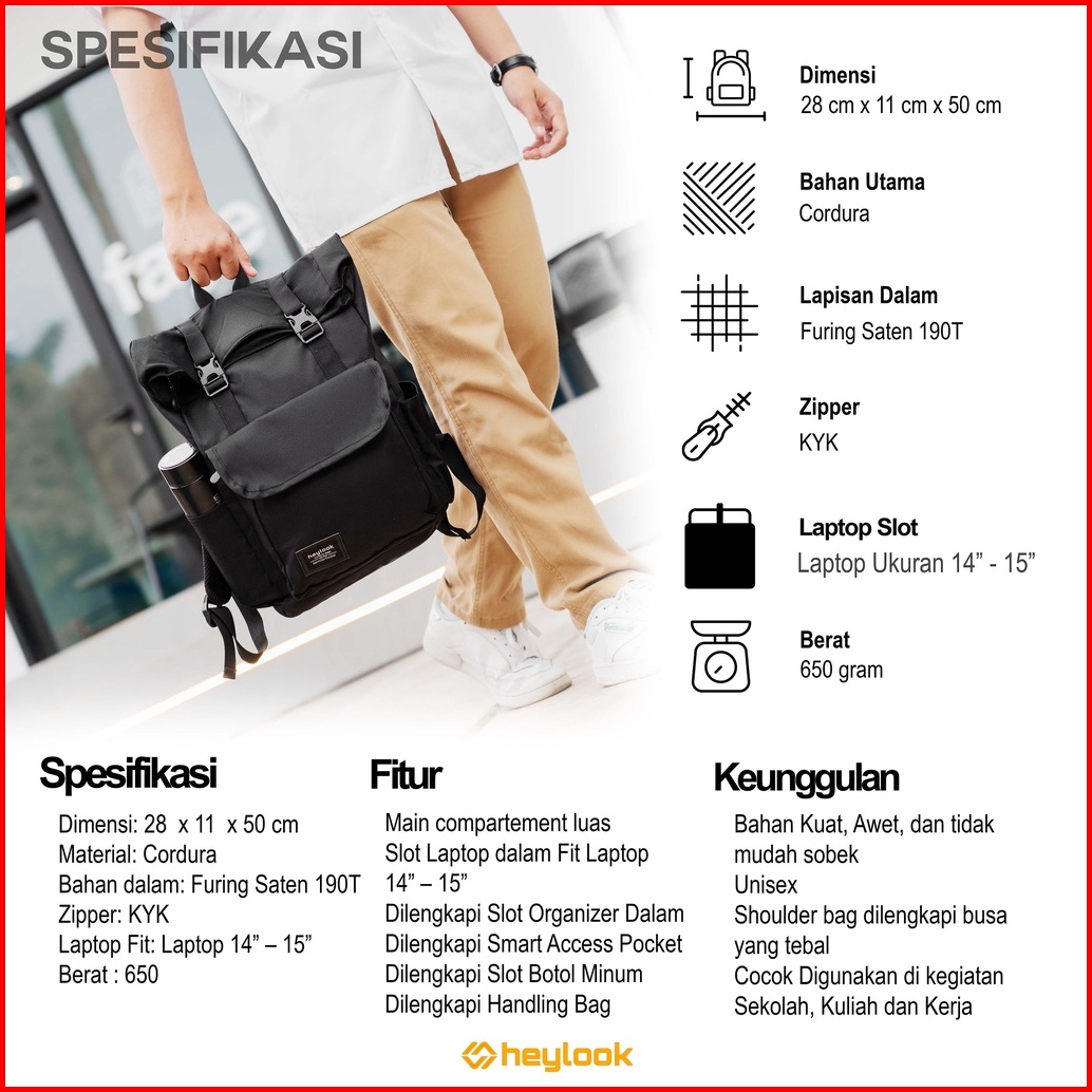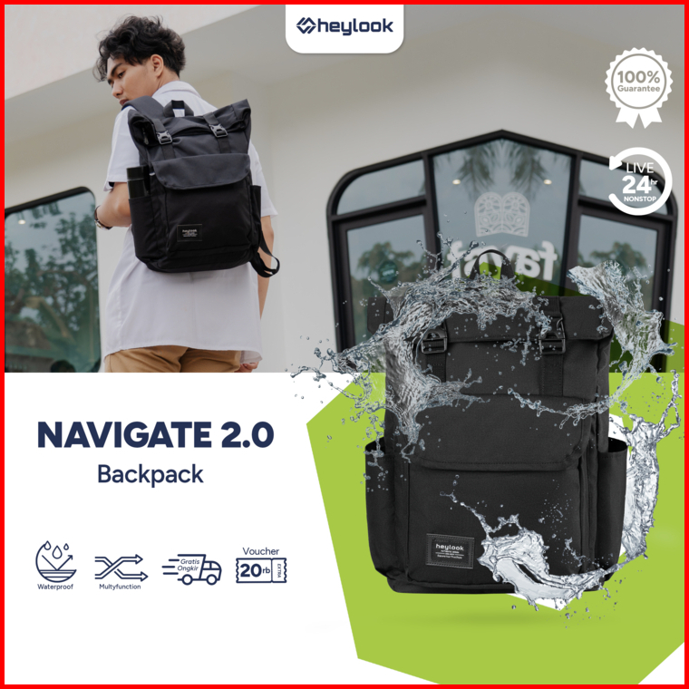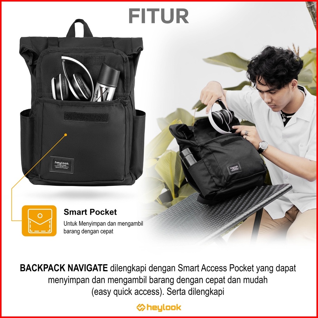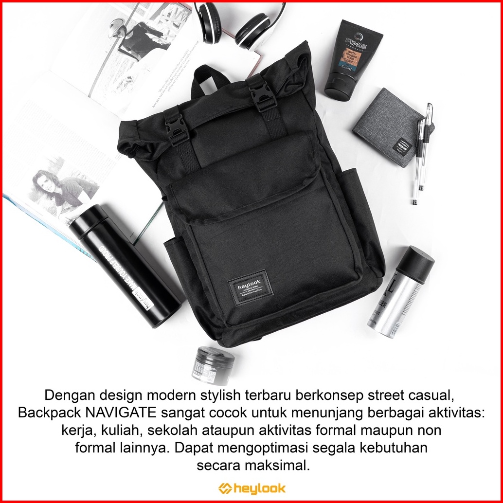 Heylook - Tas Ransel Laptop Navigate 2.0 Tas Punggung Tas Kuliah Tas Kerja Pria Tas Sekolah Sd Smp Sma Laki Laki Tas Lep