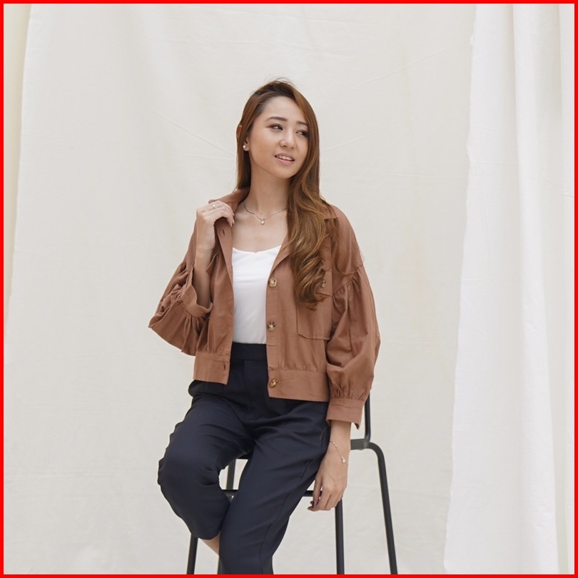 Msmo Ruby Oversized Crop Outer Kemeja Kantor Kemeja Linen Outer Linen Atasan Wanita