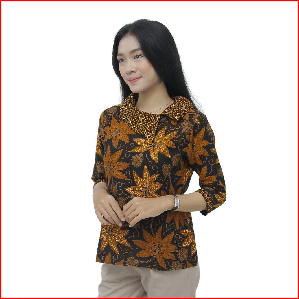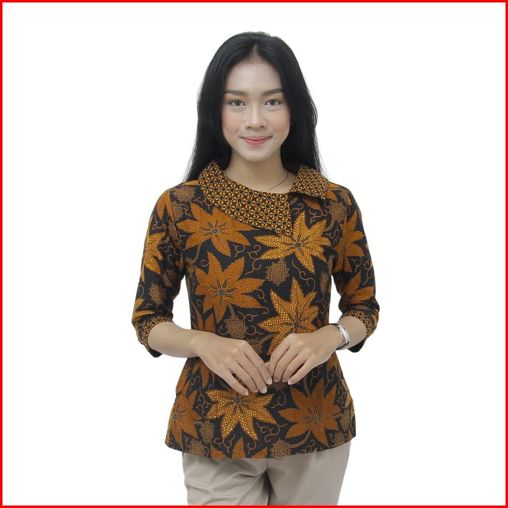 Batik Wanita Atasan Blouse Modern Model Kerah Besar Batik Kerja Wanita