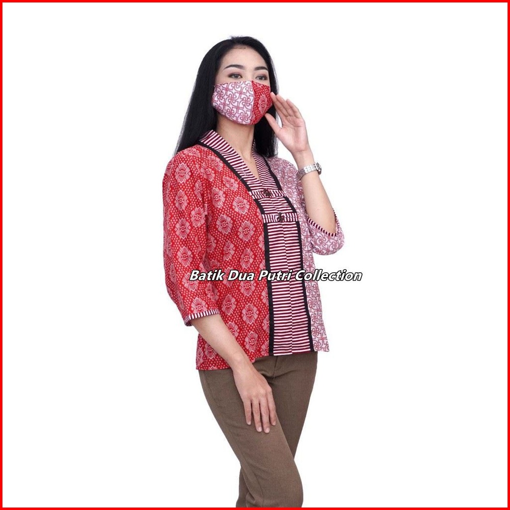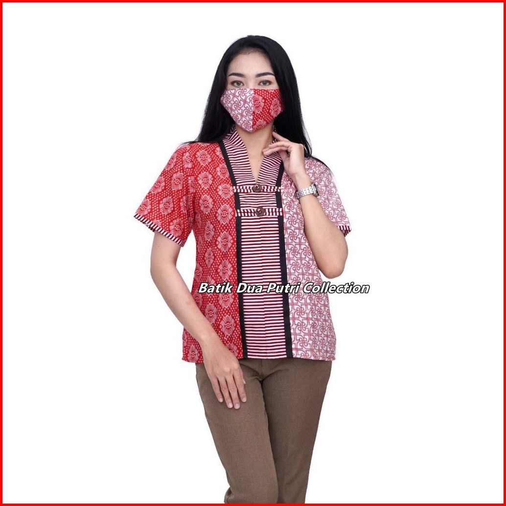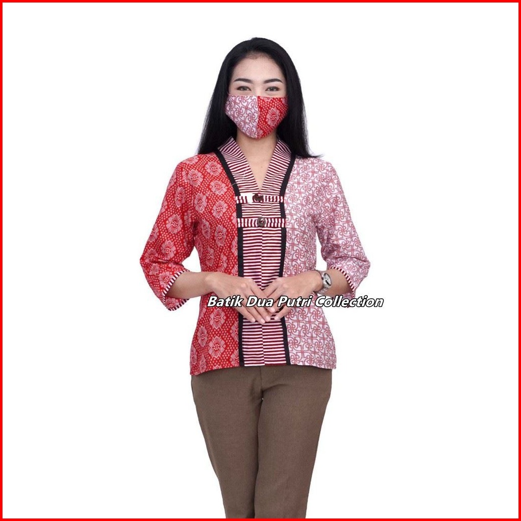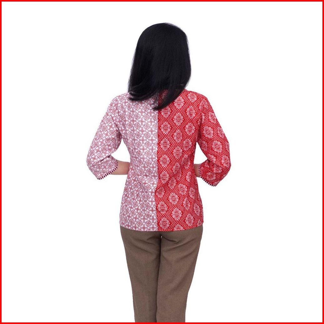 Boluse Batik Wanita - Atasan Batik - Blus Batik - Warna Merah Putih - Batik Wanita -s-m-l-xl-xxl-3l-4l-5l
