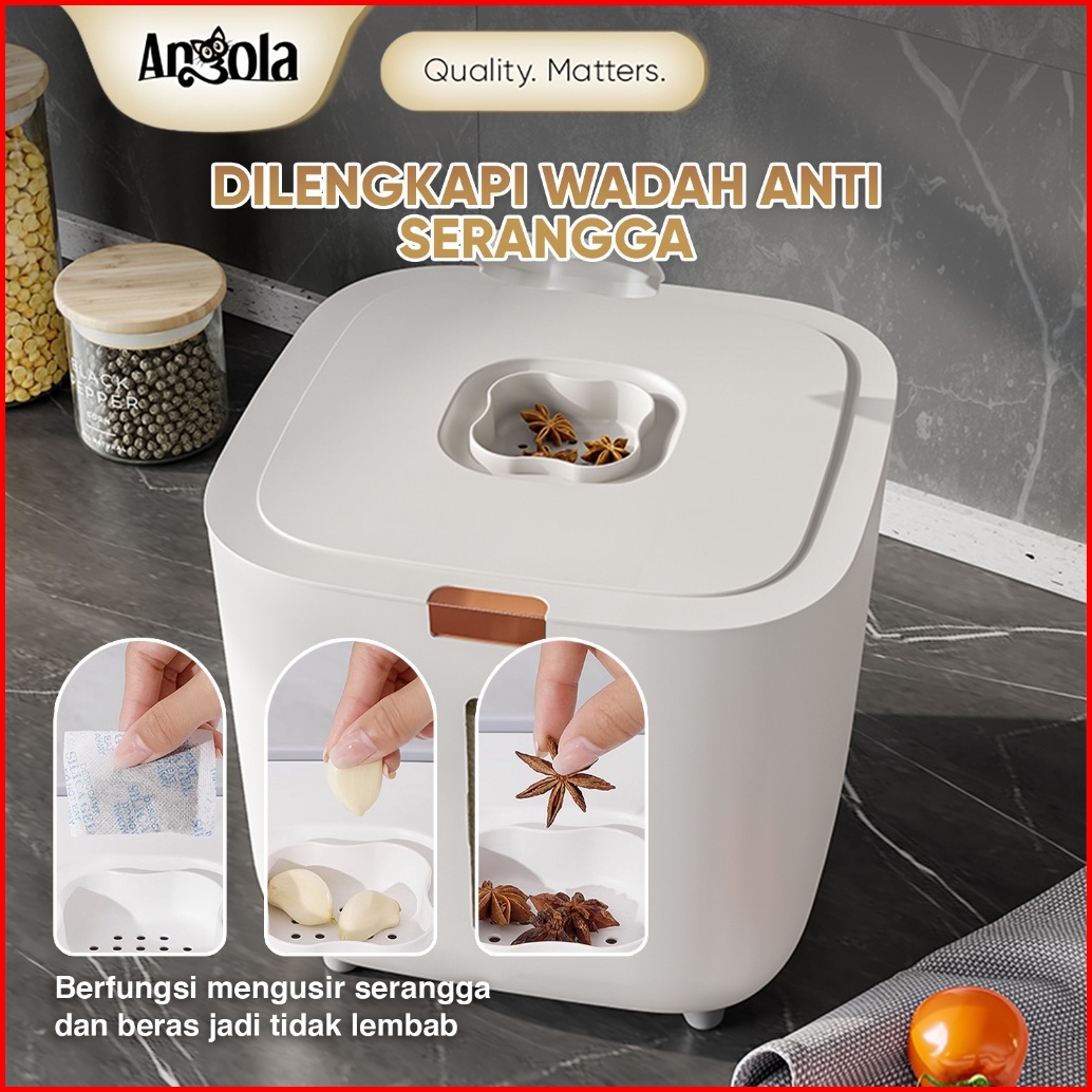 Dijamin Asli Angola Dispenser Beras Anti Kutu Serangga 15kg Tempat Penyimpanan Serbaguna Bpa Free