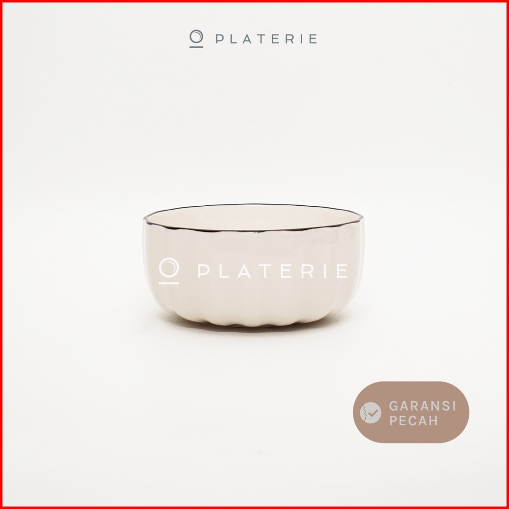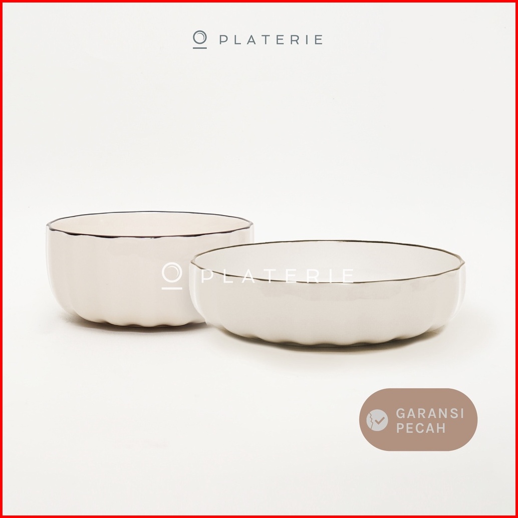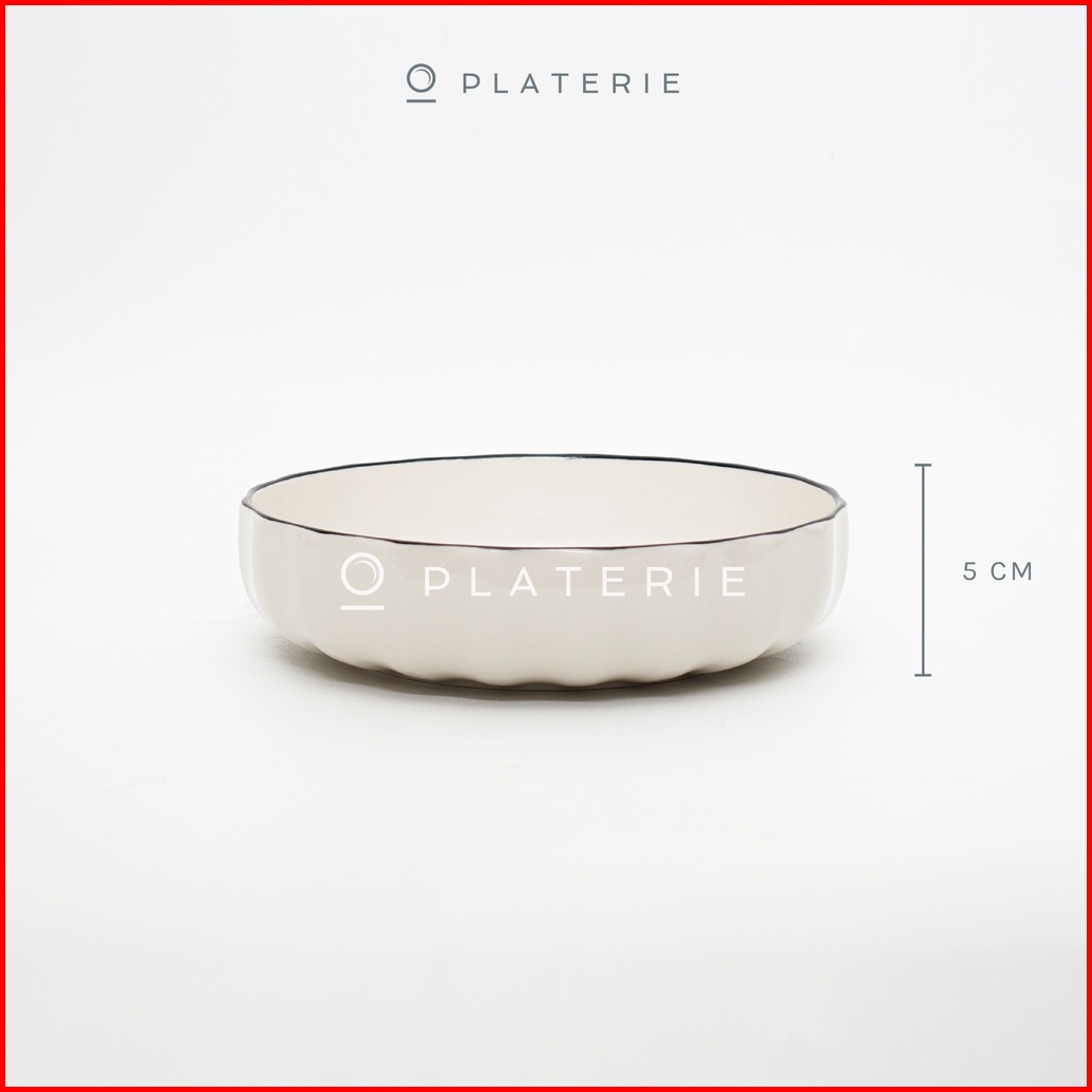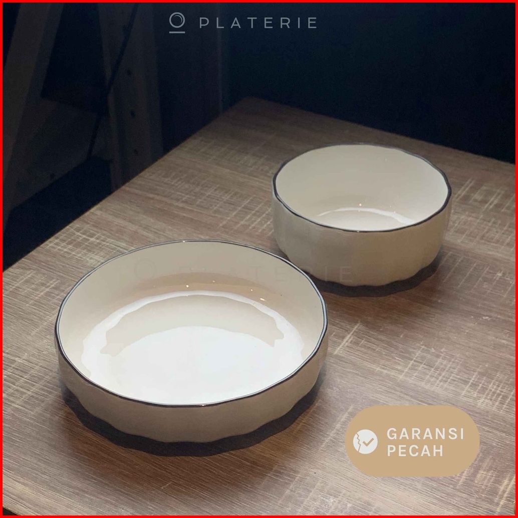 Platerie Piring Porcelain Embossed Bowl Deep Plate 6 8 Inch 14 19 Cm Textured White Wave
