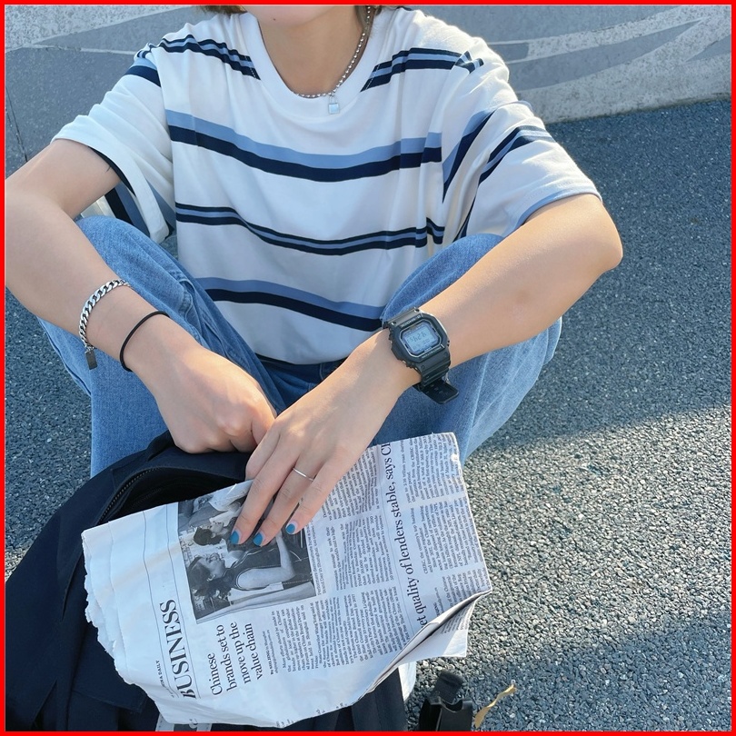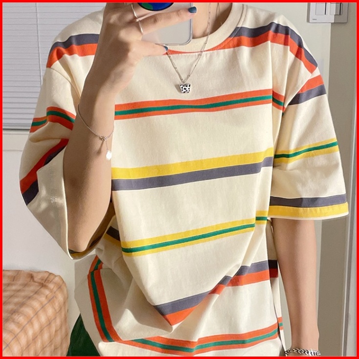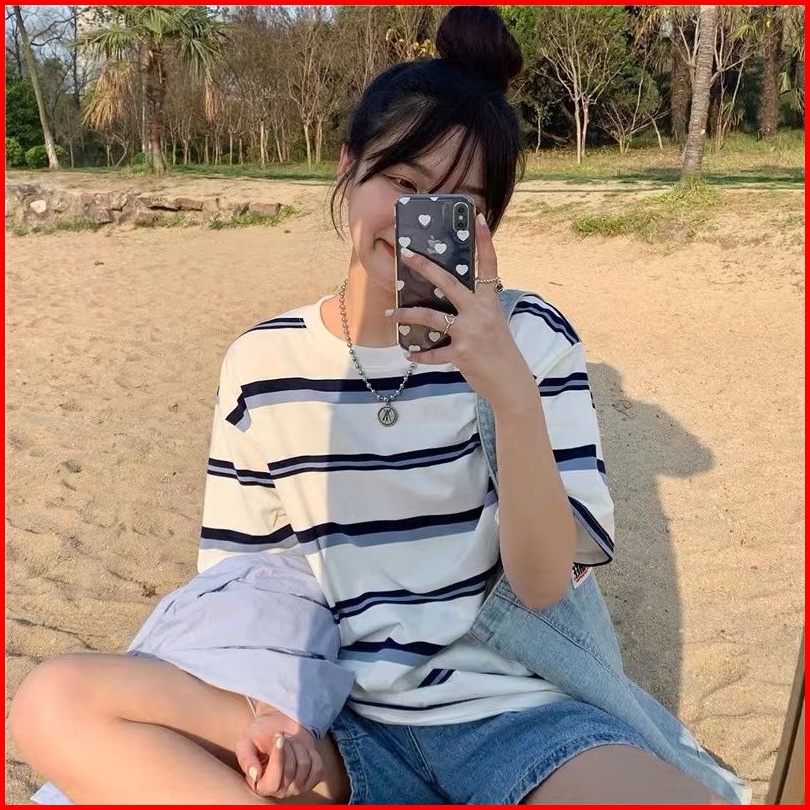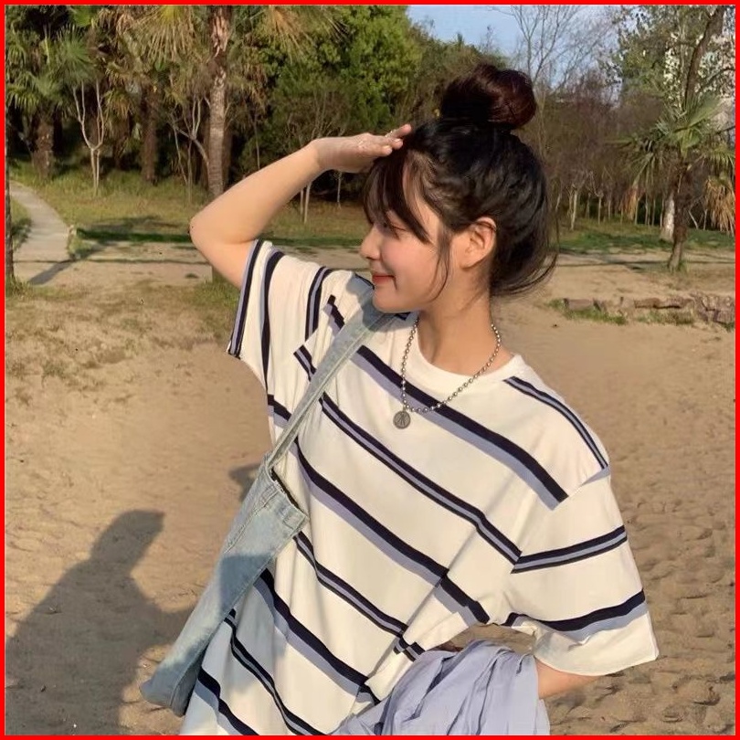Yuruma T-shirt Bergaris Lengan Pendek Versi Korea Atasan Longgar Cocok Untuk Semua