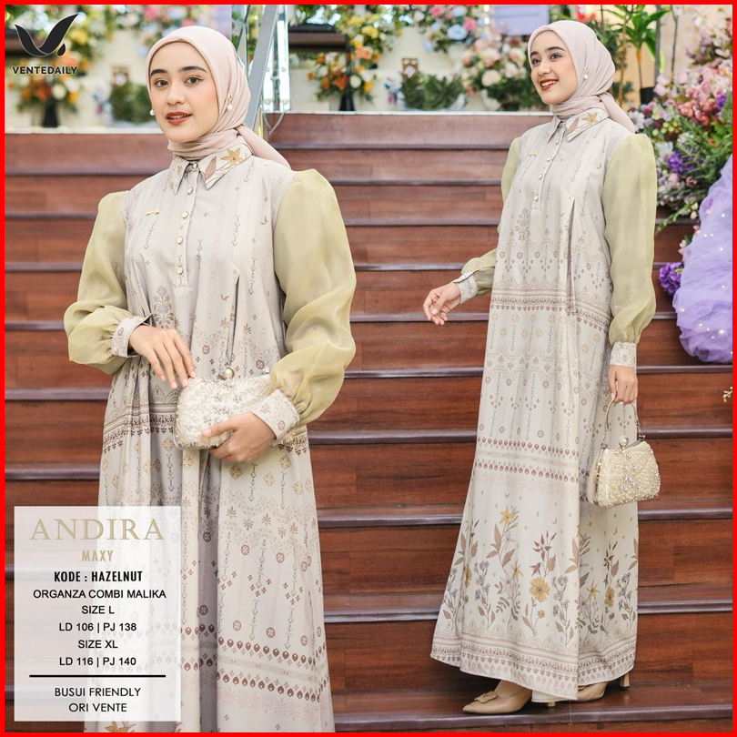 Kun Hijab Andira Maxy Dress Kondangan Kekinian Terbaru Bahan Organza Mix Malika Ld 106 116 Ventedaily