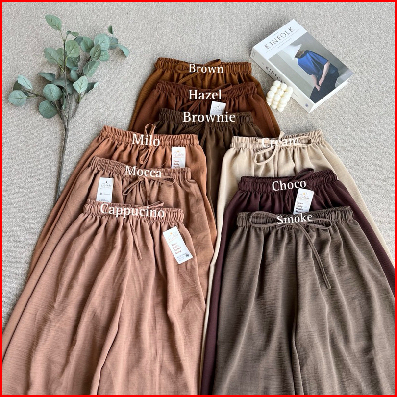 Hitam, Brick, Brown, Milo 2, Hazel, Milo, Brownie, Cappucino, Mocca, Cream, Tiramisu, Sand, Smoke, Choco, Taupe, Dark Taupe, Dove, Violet, Blushpink, Beige, Grape, Army, Matcha, Sage, Emerald, Greentea, Mint, Denim, Turkish, Navy, Darkgrey, Soft Blue, Charcoal, Soft purple, Grey, BW, Maroon, Terracota, Fuschia, Lemon, Sunkist, Ginger, Murberry, Mauve