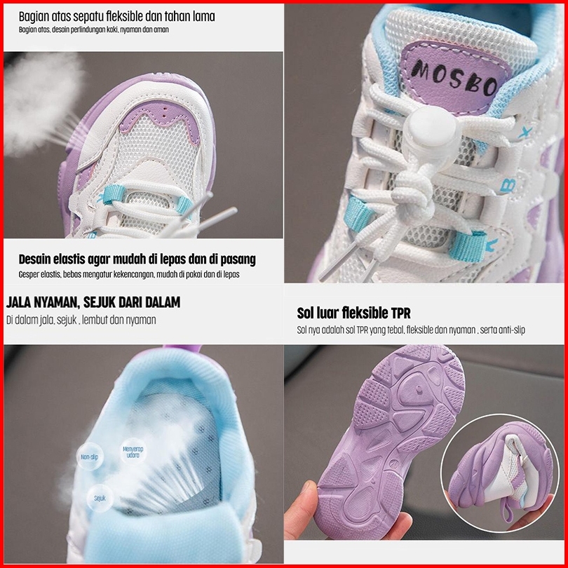 Mosbo Sepatu Sneakers Anak Laki-laki Perempuan Sepatu Anak Sneakers Sekolah Kids Shoes Import