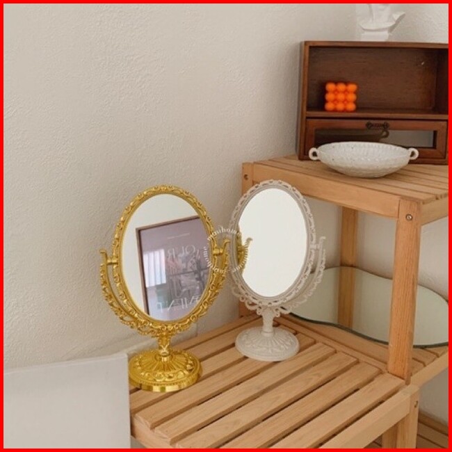 Minihome Cermin Kaca Rias Makeup Putar Oval 2 Sisi Putih Dekorasi Vintage Korean Aesthetic Retro Home Decor Ins Nordic S