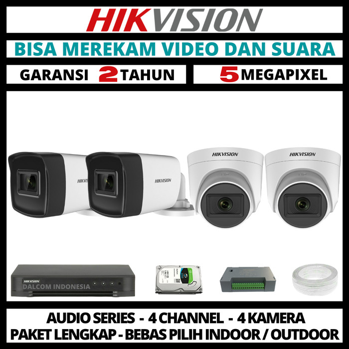 PAKET CCTV HIKVISION 5MP 4 CHANNEL 4 CAMERA TURBO HD KAMERA CCTV - TANPA HDD