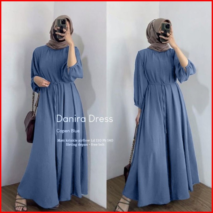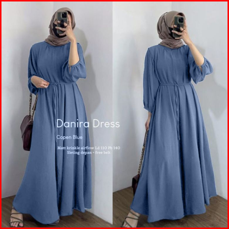 Vallina Outfit - Danira Maxy Wanita Muslim Dress Gamis Kondangan Crinkle Terbaru Kekinian