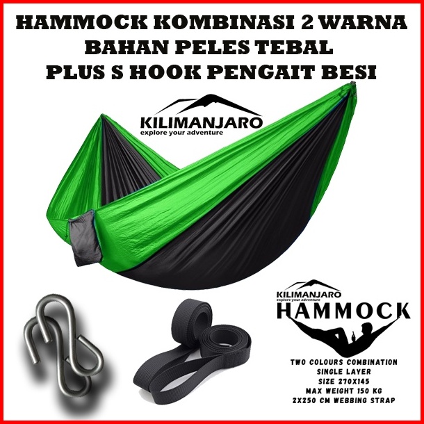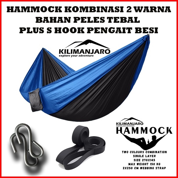 Hammock Kilimanjaro Kombinasi 2 Warna S Hook Pengait Ayunan Camping Gunung