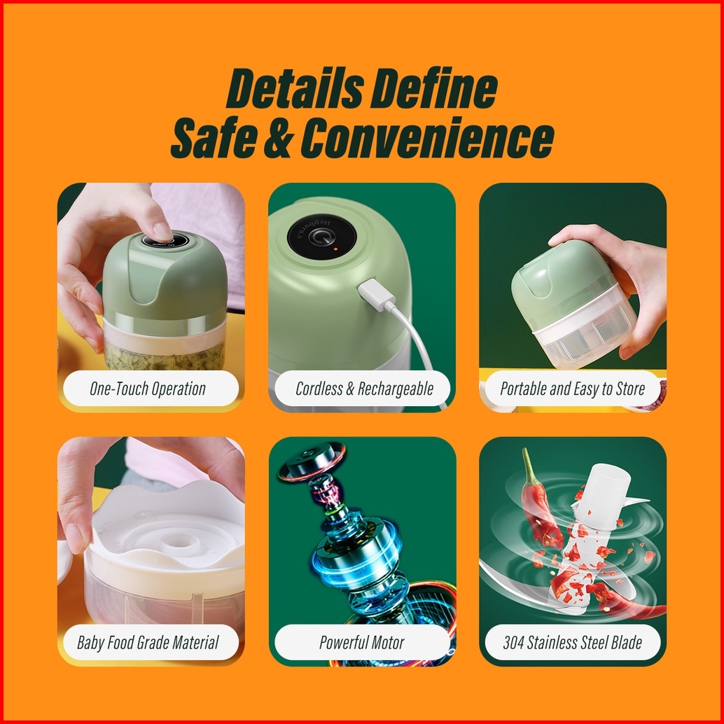 Earise Blender Portable Alat Penggiling Penghalus Bumbu Dapur Elektrik Tanpa Kabel Mini Chopper 250ml
