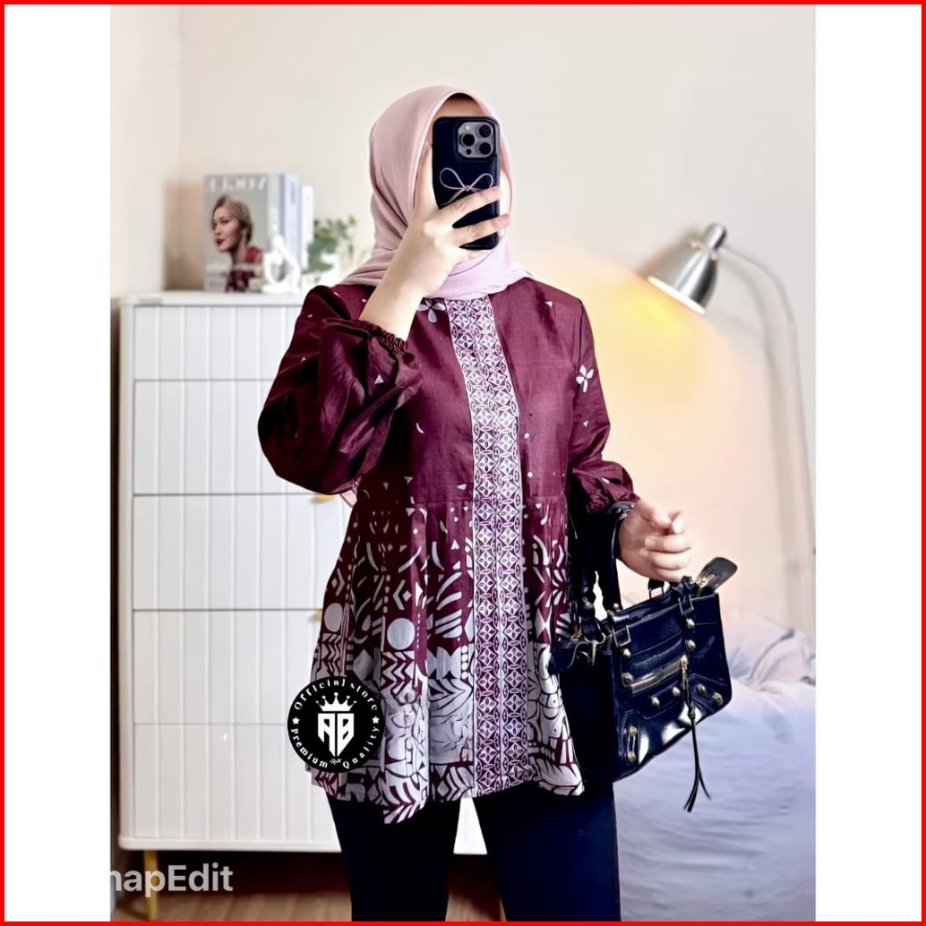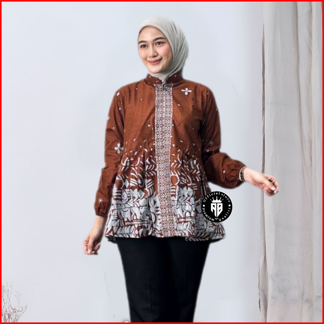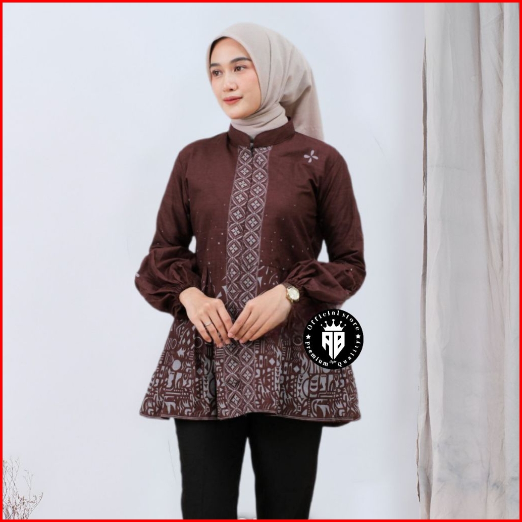 Tey-17 Batik Wanita Asj Sa Hrb026 Kenongo Kemeja Tosca Pendek