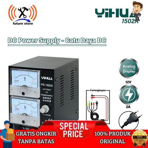 [Mall] POWER SUPPLY YIHUA 1502A ORIGINAL + KABEL USB- YIHUA 1502A DC POWER SUPPLY PENCATU DAYA ANALOG 2 AMPERE ORIGINAL