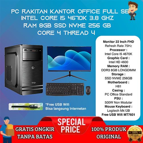 [Mall] PC RAKITAN OFFICE KANTOR FULL SET INTEL I5 4670K RAM 8GB SSD 240GB