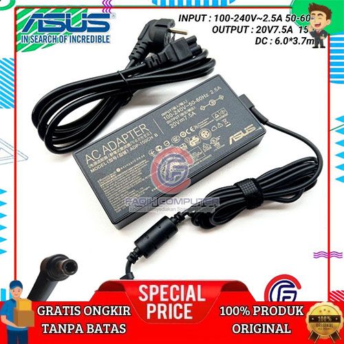 [Mall] ADAPTOR CHARGER LAPTOP ASUS ROG STRIX SCAR III G531GD G531GT G531GD-AL034T 20V-7.5A 150W DC PORT 6.0X3.7MM