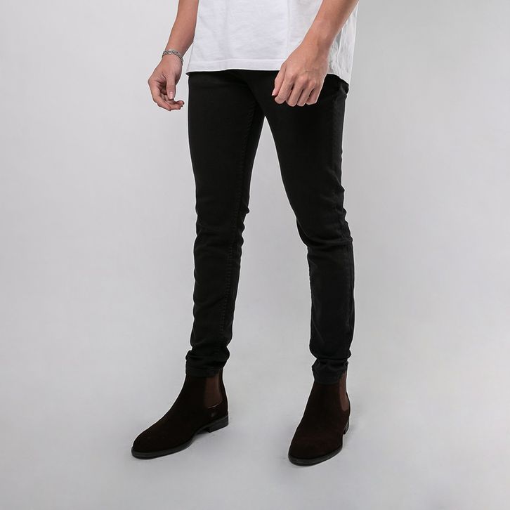 Celana Skinny Fit Jeans Pria Bahan Soft Stretch Denim Warna Hitam (UJ - 02) Terbaru