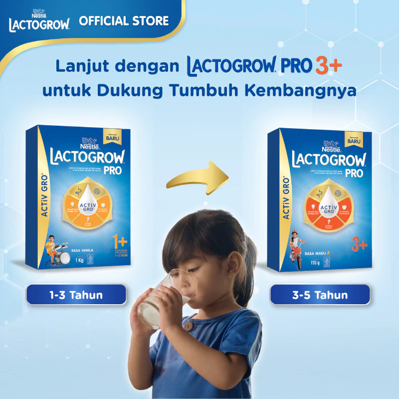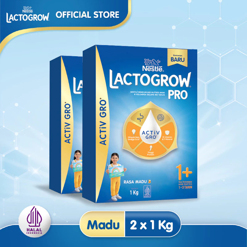 (x2Pcs) Nestle LACTOGROW PRO 1+ / LACTOGROW 3 dengan ACTiVGRO Susu Madu Box - 1000g x 2 [1-3 tahun]