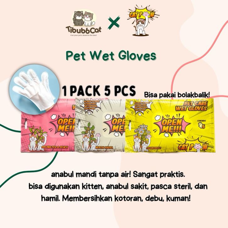 CATPOW Pet Care Wet Gloves Sarung Tangan Tisu Mandi Kucing Anjing Tanpa Air No Reog