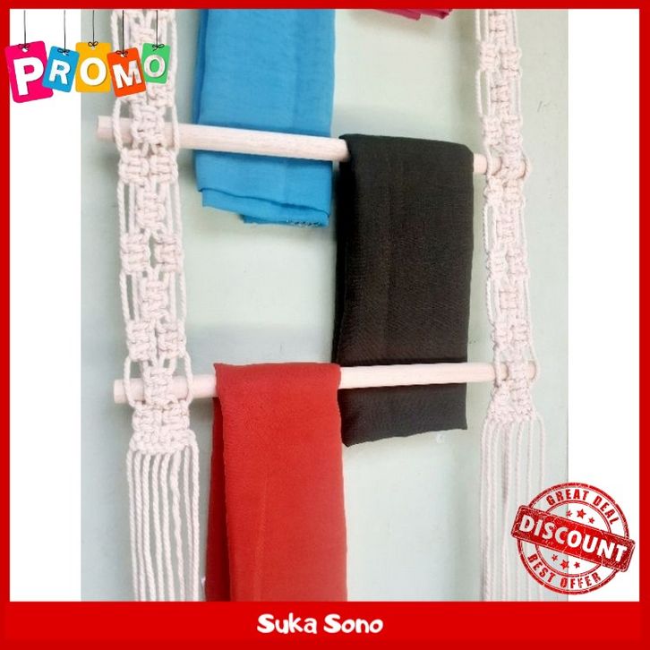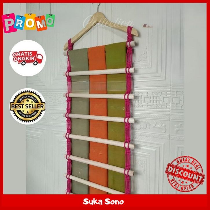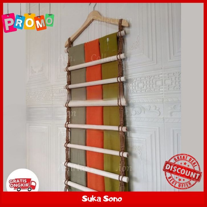 Ladder Hanger 8 Susun 6 Susun 4 Susun 2 Susun Anyaman Tali Macrame Kayu Dowel Bulat Panjang Gantungan Baju Hijab Mukena