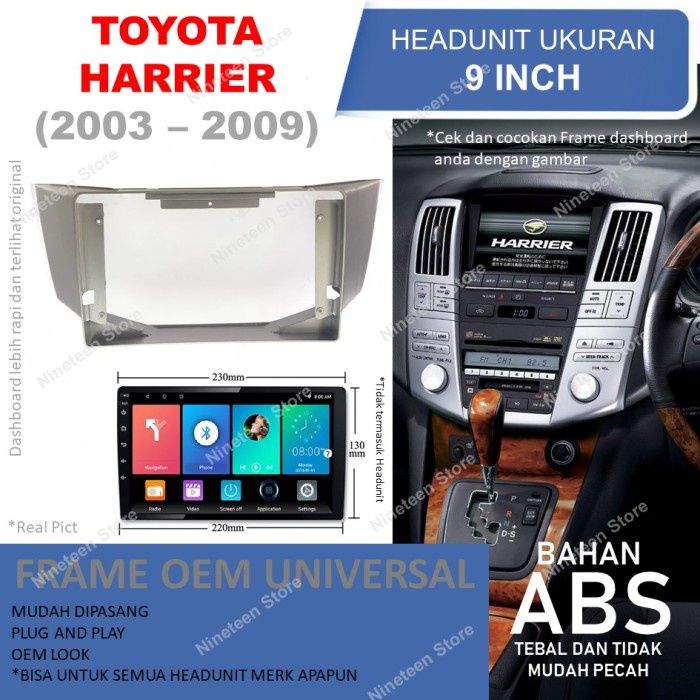 Panel Frame Toyota Harrier 2003 - 2009 Untuk Head unit Android 9 inch