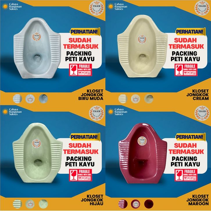 Putih (Trilliunware), Ivory (Trilliunware) , Biru Muda (Trilliunware), Pink (Trilliunware) , Hijau (Trilliunware) , Maroon (Trilliunware), Biru Muda (Tiger), Cream (Tiger) , Hijau (Tiger) , Maroon (Tiger) , Pink (Tiger) , Putih (Tiger), Tutup Kloset Random