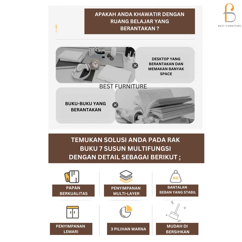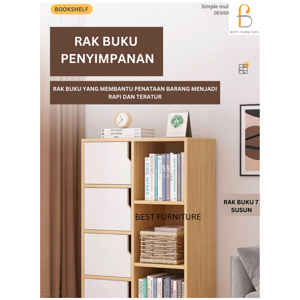 [Mall] Rak Buku Kayu Kokoh Minimalis Rak Pajangan Rak Buku 7 Susun