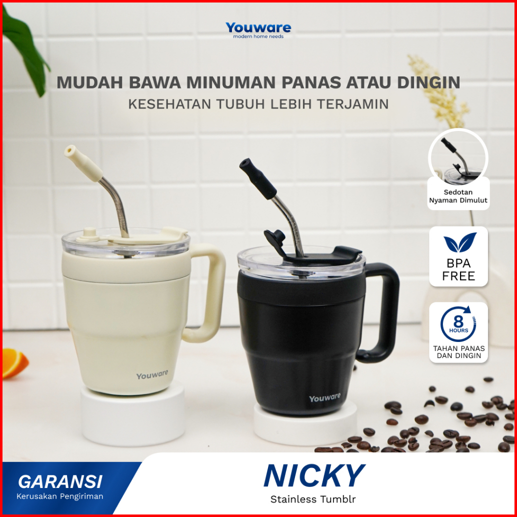 Youware - Nicky Gelas Kopi Aesthetic Tumbler Stainless Steel 480ml Tahan Panas Dingin