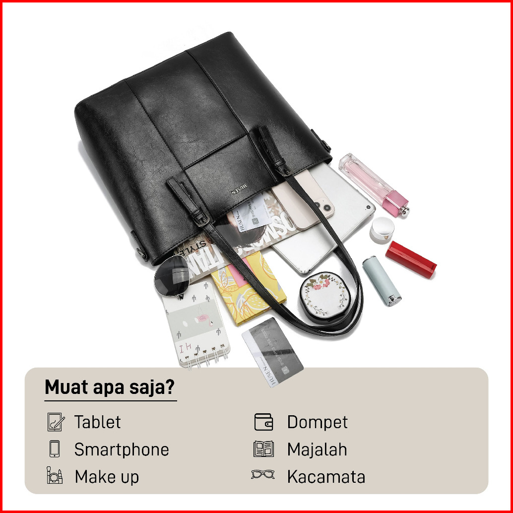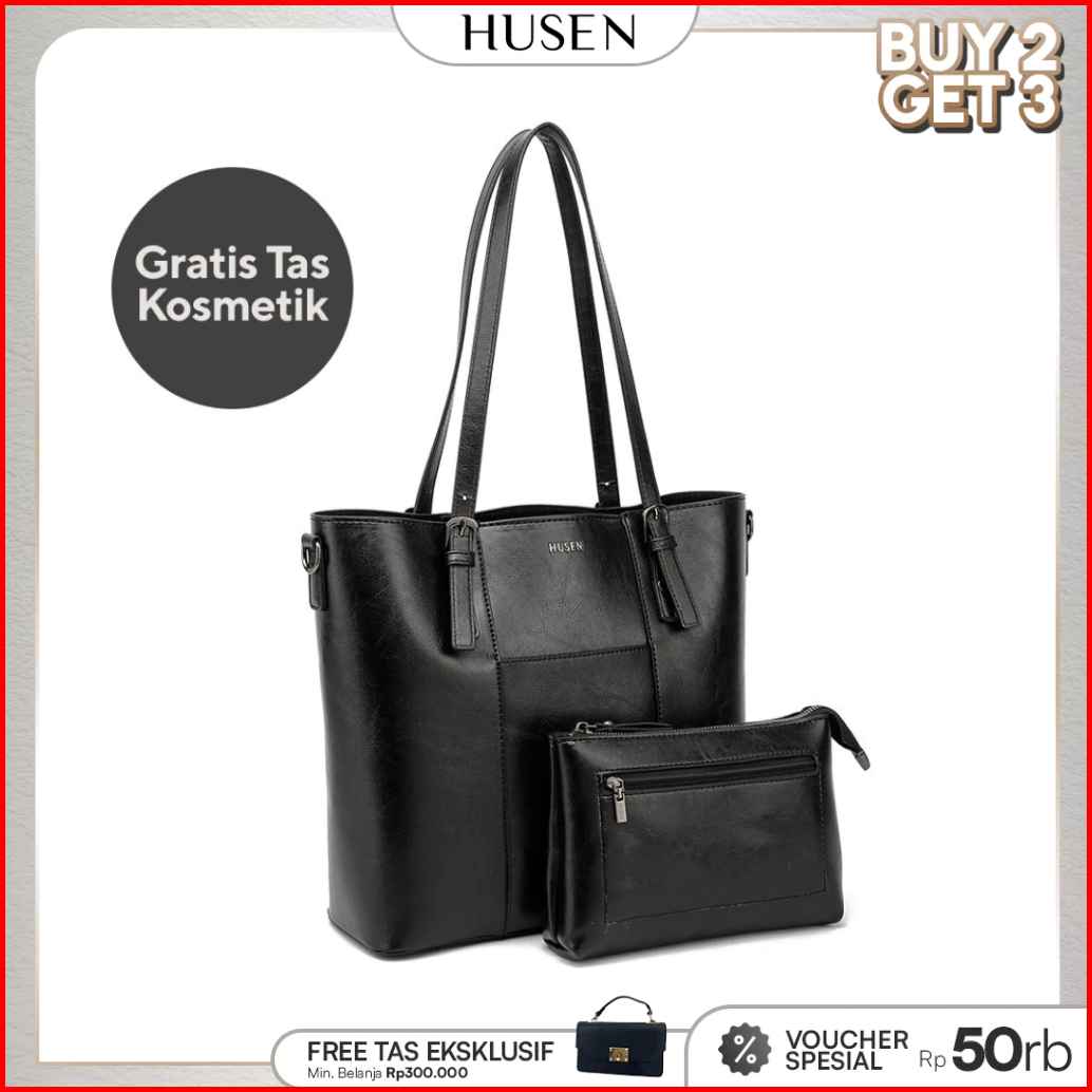 Free Pouch Husen Totebag Wanita 2 In 1 Sabhira Bag Tas Kerja Kuliah Jinjing Shoulder Bag Resleting