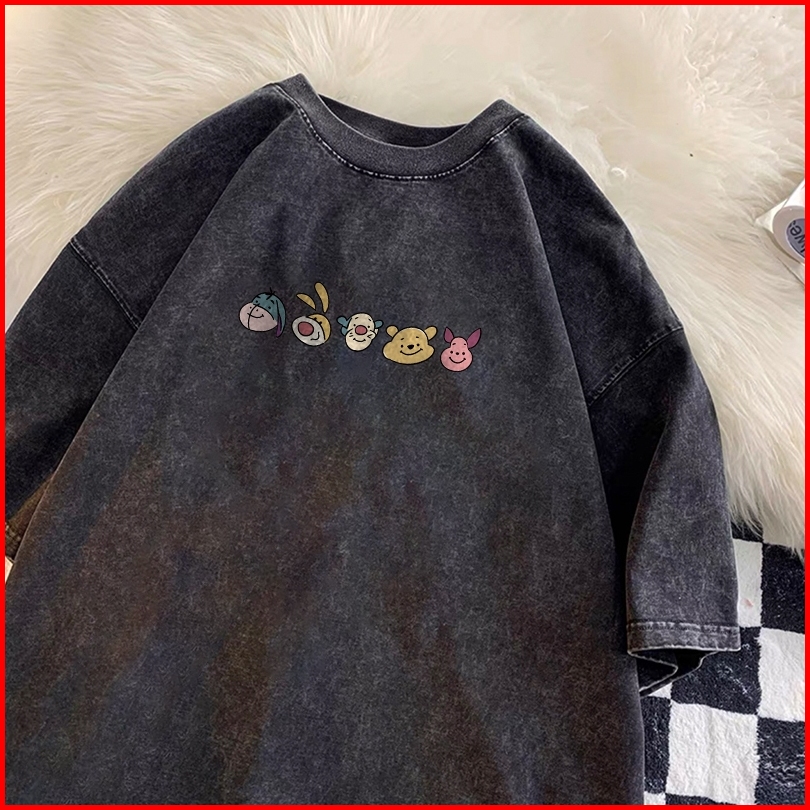 A1094 Forteid T-shirt Washed Oversize Tigger And His Hood Friend Baju Atasan Lengan Pendek Wanita Kaos Oversize Terbaru