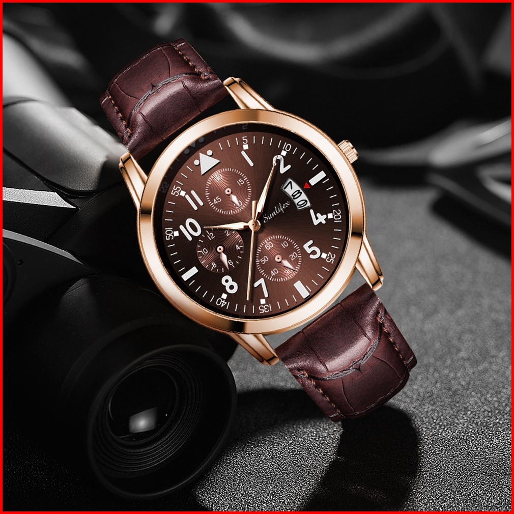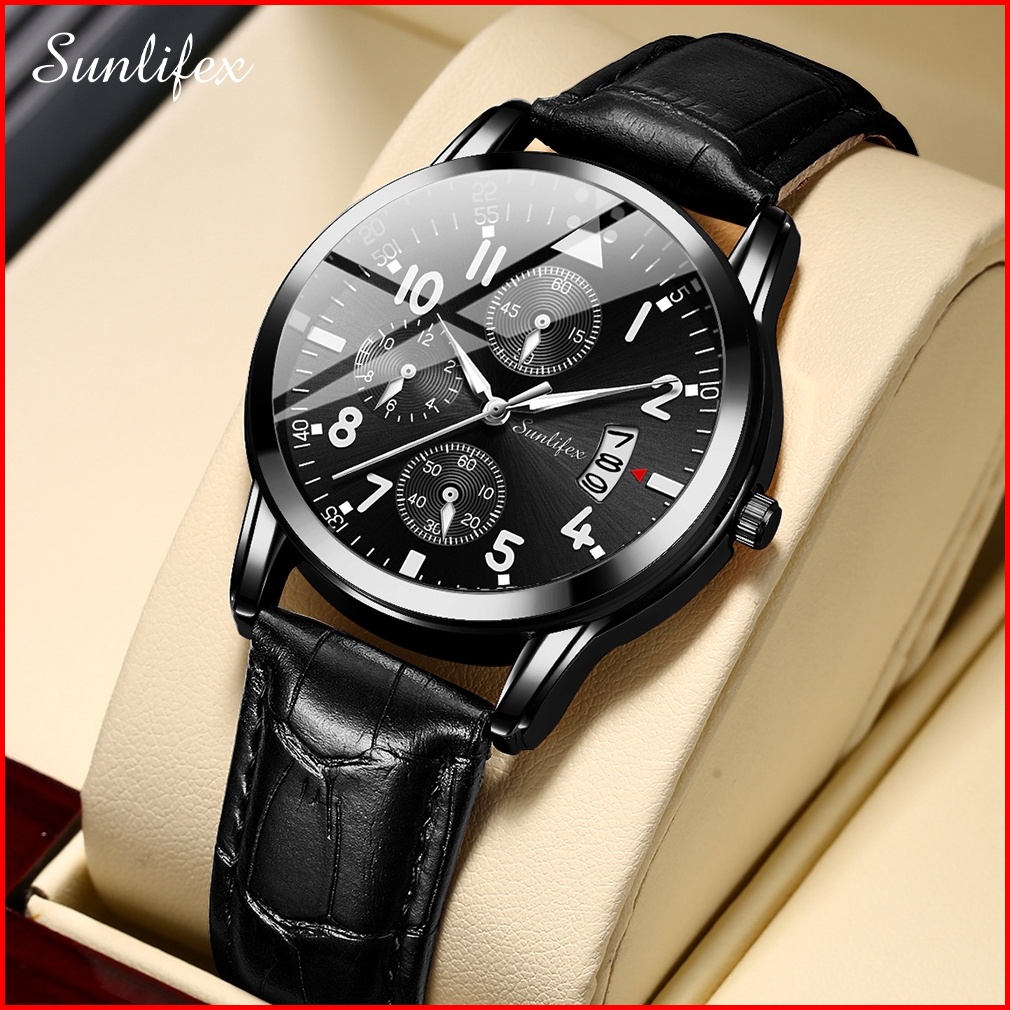 Sunlifex Jam Tangan Pria 7004 Original Anti Air Kuarsa Tali Kulit Jam Tangan Cowok