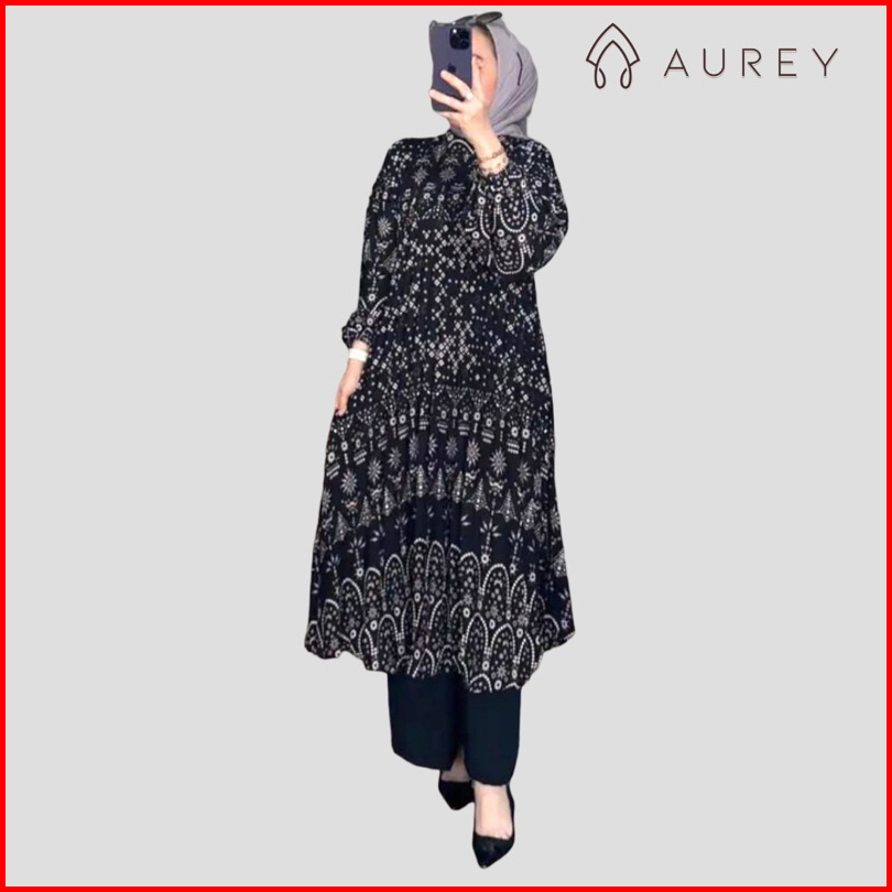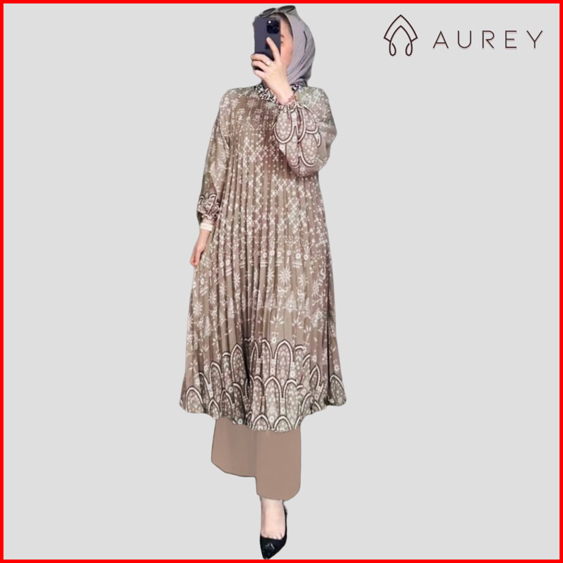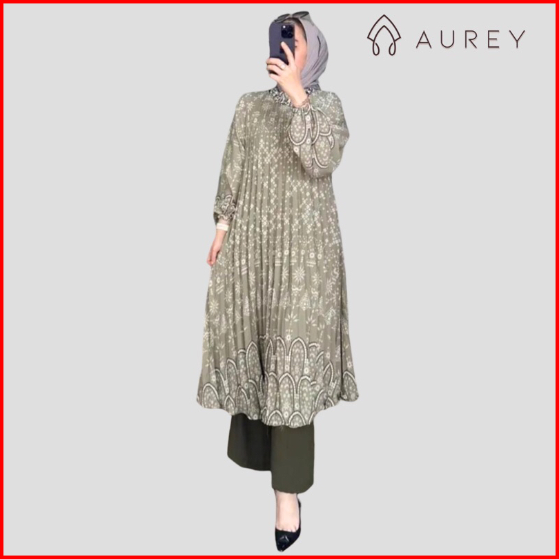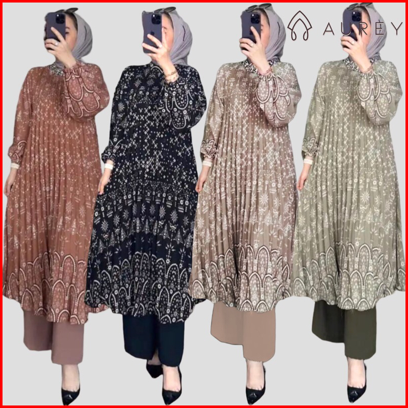 Aurey - Oneset Long Tunik Plisket Kamila Setelan Tunik Panjang Wanita Oneset Jumbo Lengan Panjang Setelan Celana Wanita