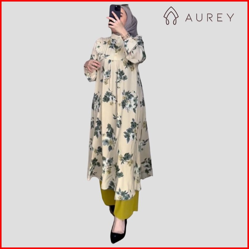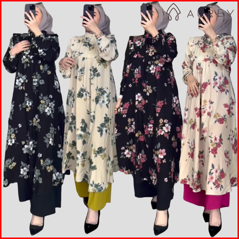 Aurey - Oneset Long Tunik Wanita Namira Setelan Tunik Panjang Rayon Busui Setelan Celana Lengan Panjang Oneset Tunik Wan