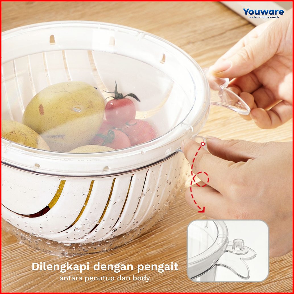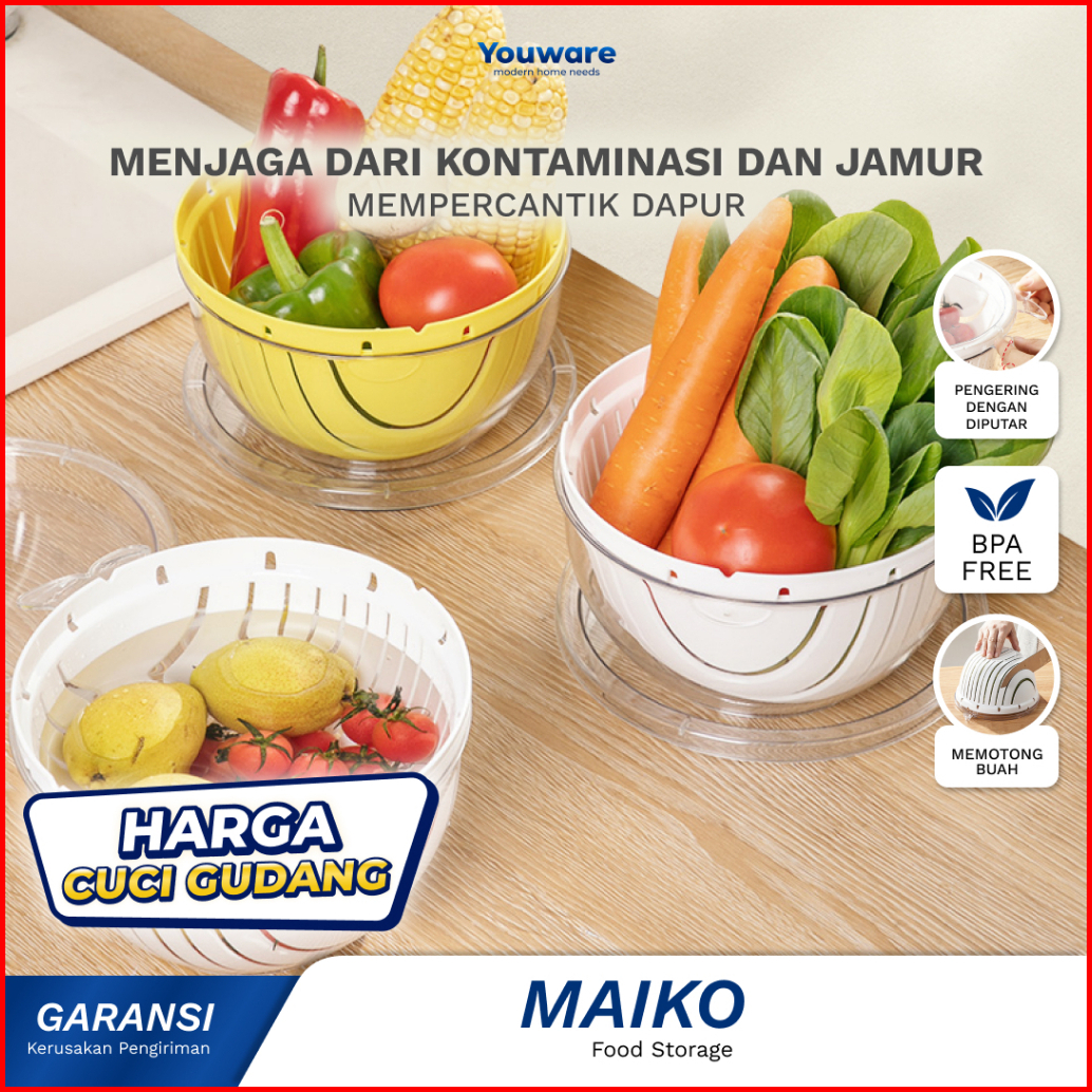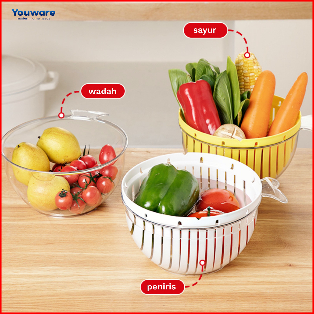 Youware - Maiko Wadah Pengering Saringan Cuci Buah Sayuran Makanan Baskom 2 In 1 Penganduk