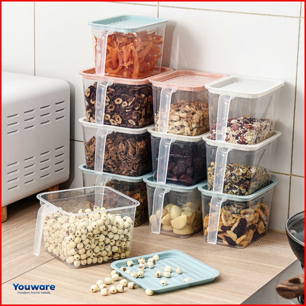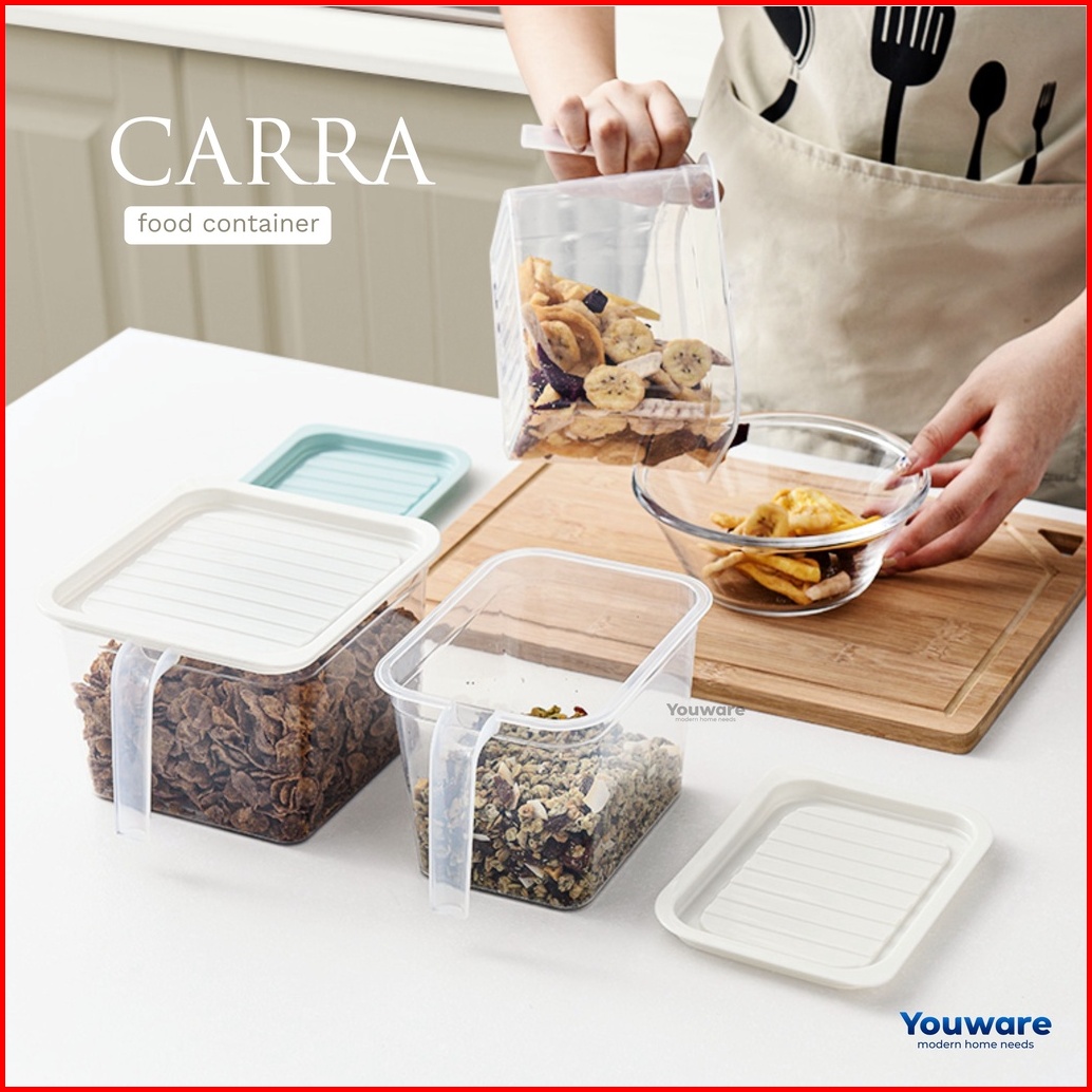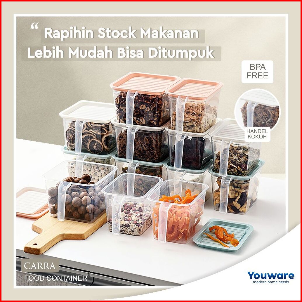 Youware - Carra Kotak Kontainer Tempat Penyimpanan Dengan Tutup Dan Pegangan Toples Makanan Sayur Buah Daging Bawang Cab