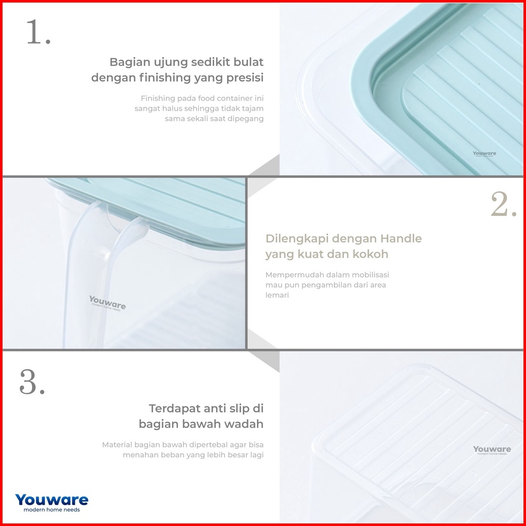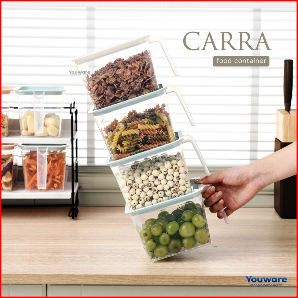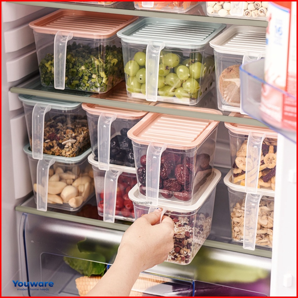 Youware - Carra Kotak Kontainer Tempat Penyimpanan Dengan Tutup Dan Pegangan Toples Makanan Sayur Buah Daging Bawang Cab