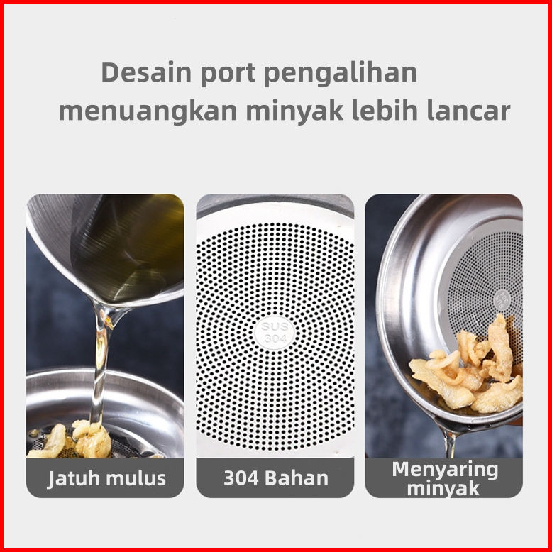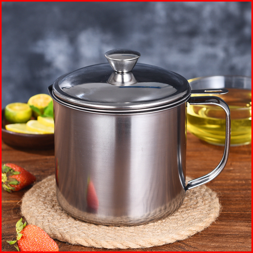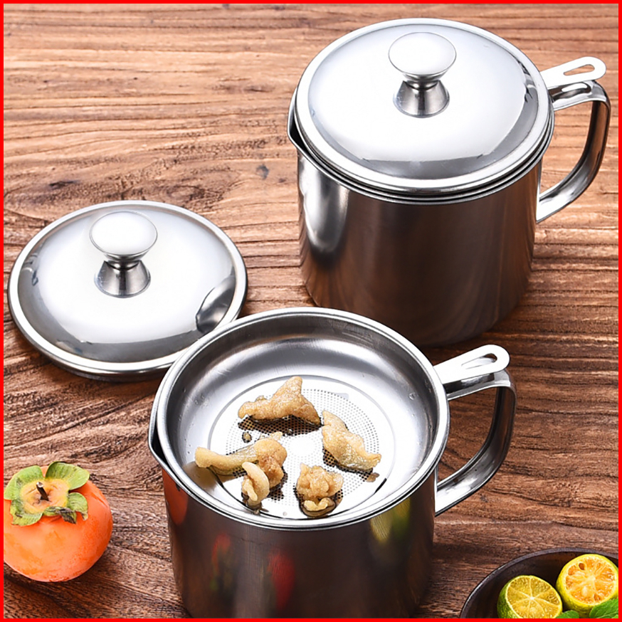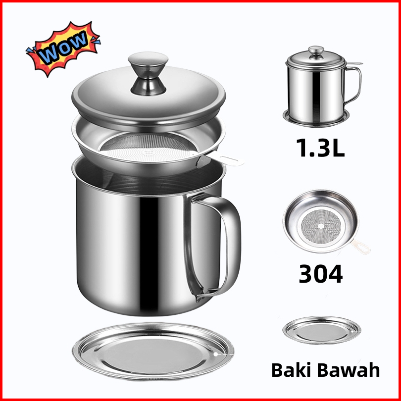 Oil Pot 1.3 Liter 304 Bahan Stainless Steel Saringan Minyak Bekas Pakai Kendi Filter Oli Murah Wadah Penyaring Minyak Go