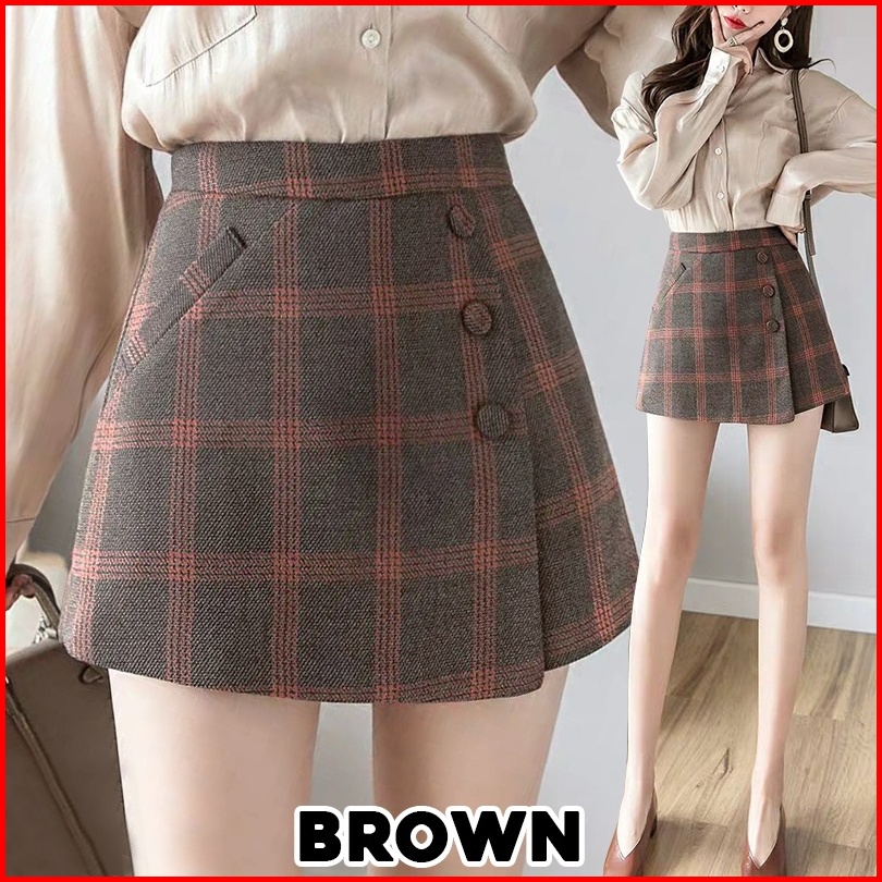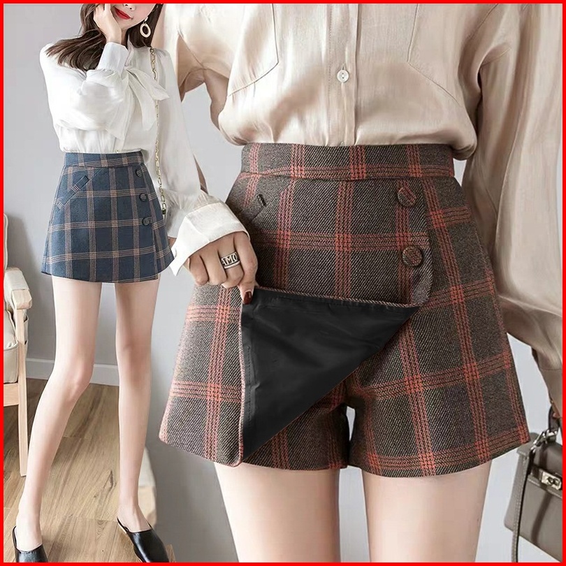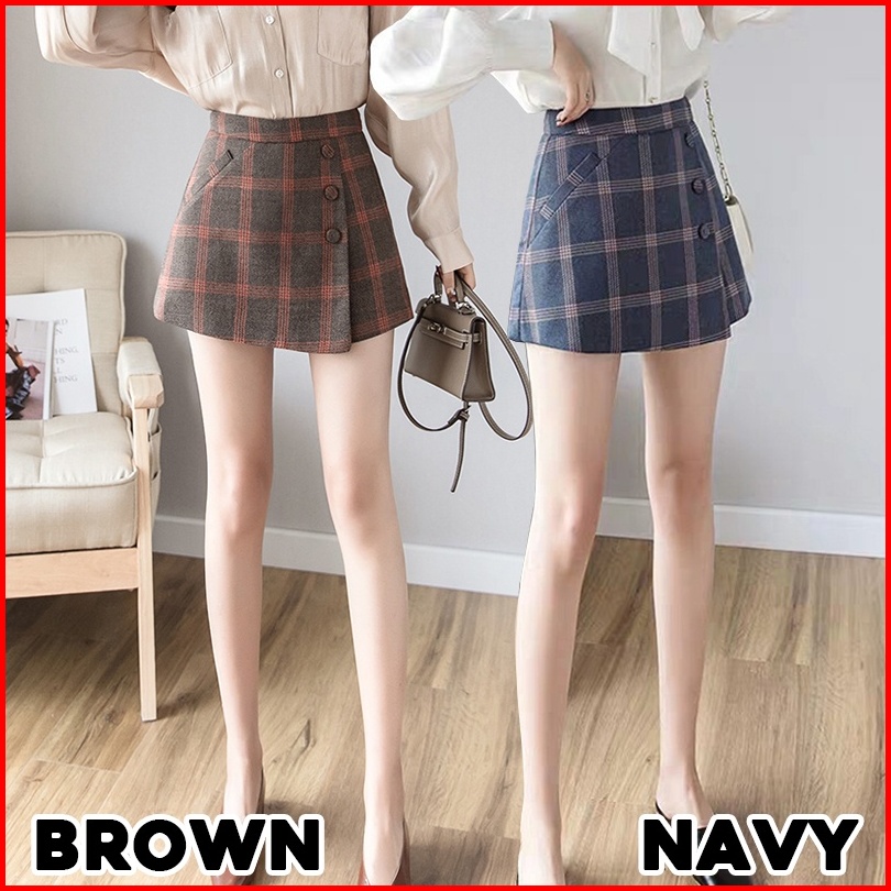 Karakorea 8300 Solar Korean Short Pants Skort Skirt Celana Pendek Wanita Gaya Korea Motif Kotak